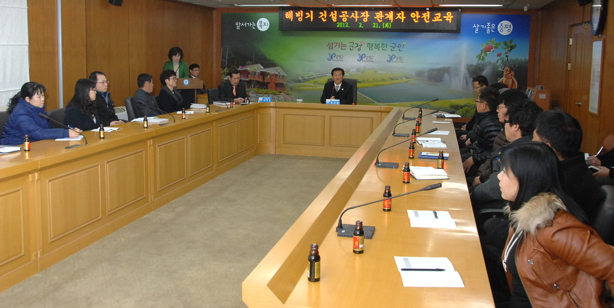 증평군은 21일 오후 3시 군청 소회의실에서 해빙기를 안전사고를 예방하기 위해 건설공사자 관계자 30여명을 대상으로 해빙기 건설공사장 안전교육을 실시했다.[보도자료실 참조]