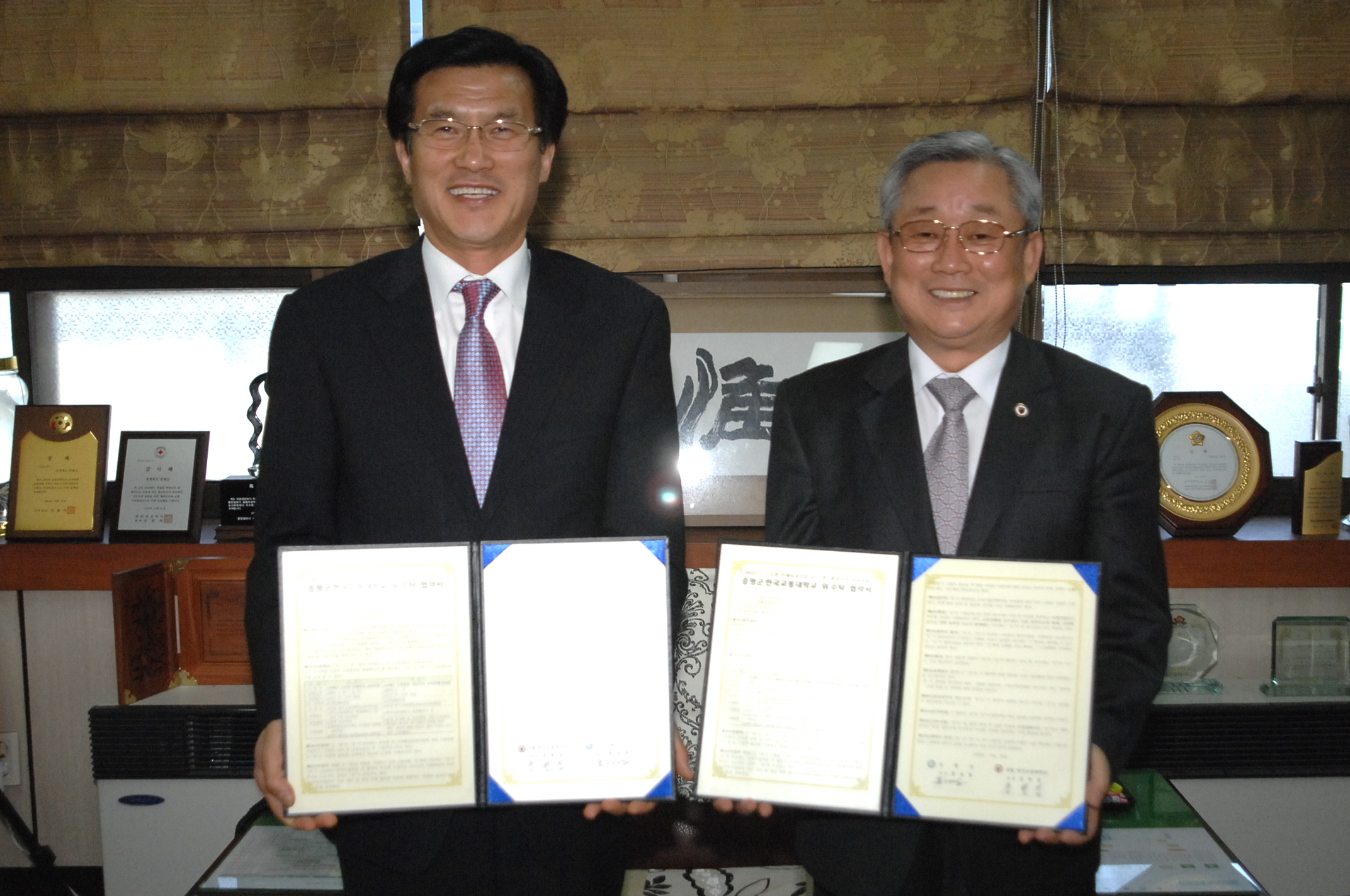 증평군(군수 홍성열)은 국립한국교통대학교(총장 장병집)와 30일 오후 2시 30분 군청 접견실에서 인재육성을 위한 교육사업협약을 체결했다. [보도자료실 참조]
