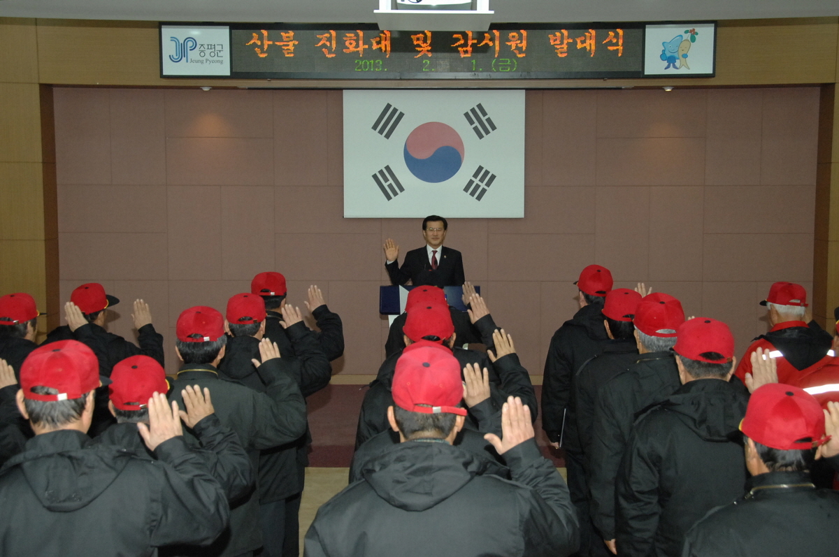 증평군은 1일 오전10시 군청 대회의실에서 산불로부터 인명과 산림자원을 보호하기 위해 산불감시원 및 산불전문예방진화대 발대식을 개최했다. [보도자료실 참조]