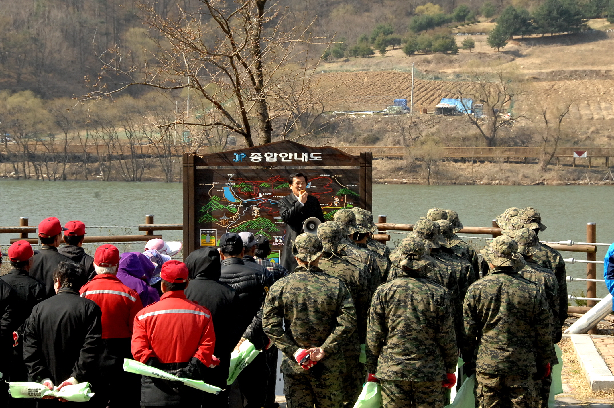 증평군과 13공수특전여단, (사)특전동지회증평지회 회원 등 60여명은 11일 삼기저수지 일원에서 민‧관‧군 합동으로 환경 정화를 실시했다. [보도자료실 참조]