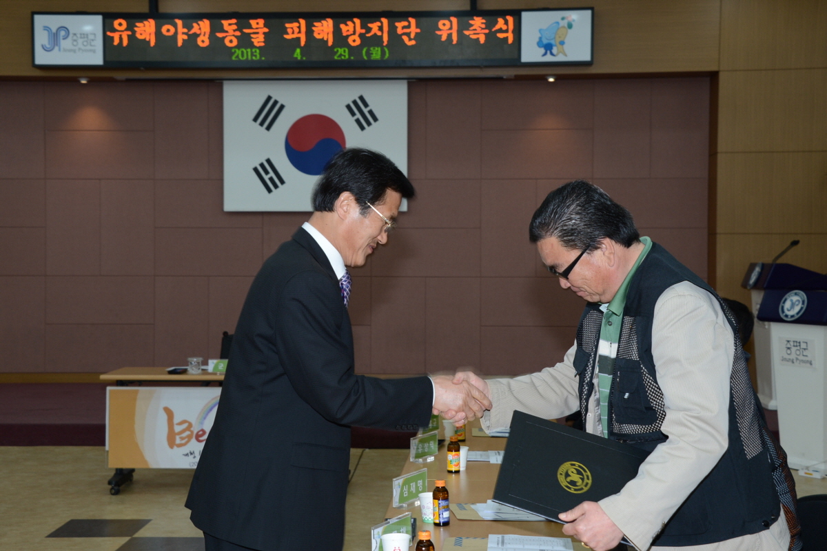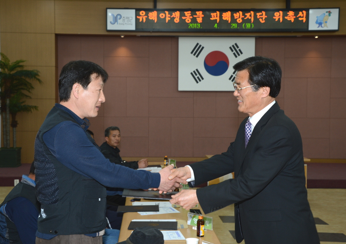 증평군은 유해야생동물로부터 농작물 피해를 방지하기 위해 29일 오후2시 군청 대회의실에서 피해 방지단 위촉식을 갖고, 다음달 1일부터 오는 10월 31일(6개월간)까지 운영에 들어간다. [보도자료실 참조]