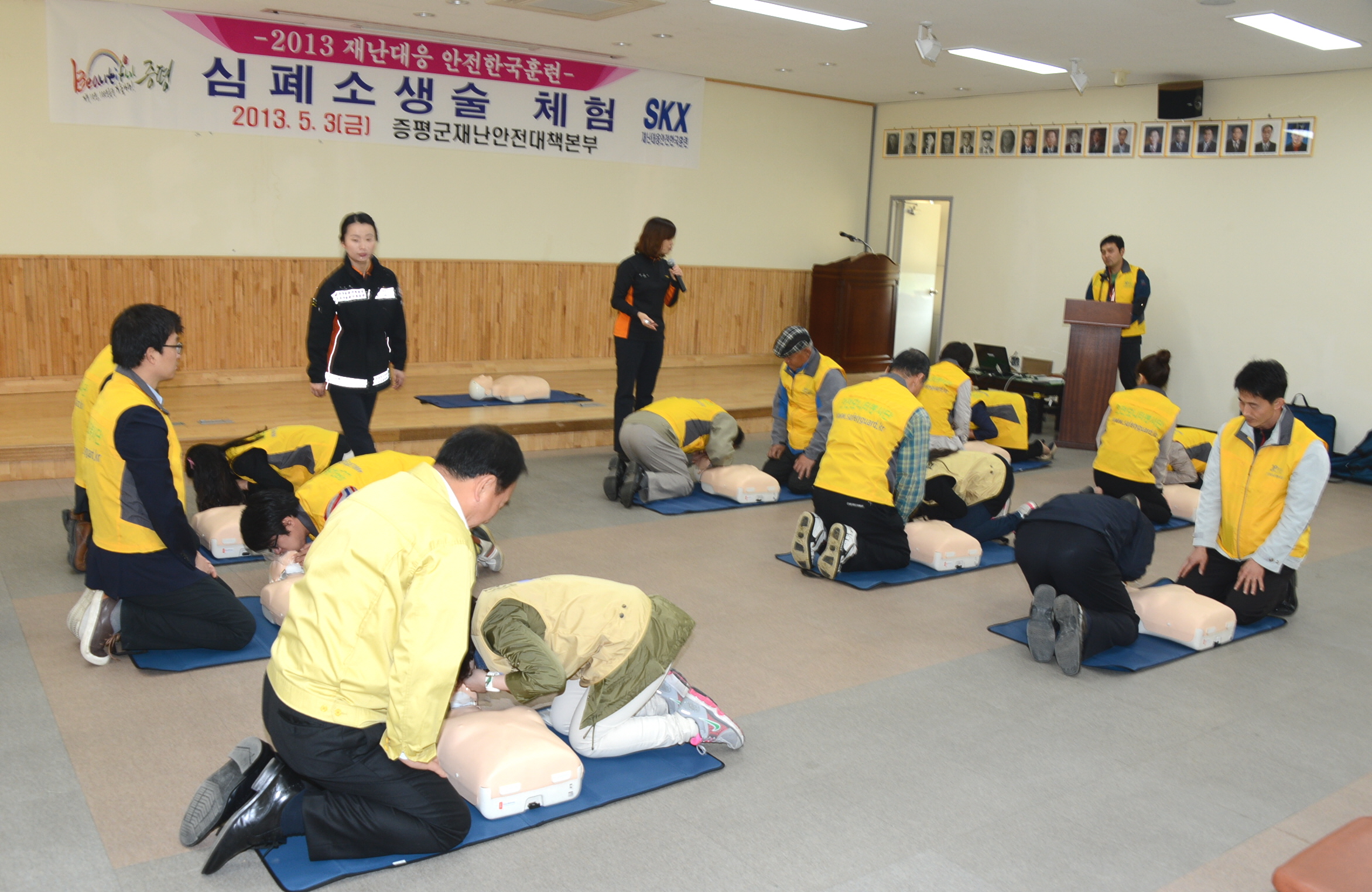 증평군은 3일 오전 10시 증평읍사무소 회의실에서 2013 재난대응 안전한국훈련의 일환으로 생명을 살리는 ‘심폐소생술 체험’을 실시했다. [보도자료실 참조]