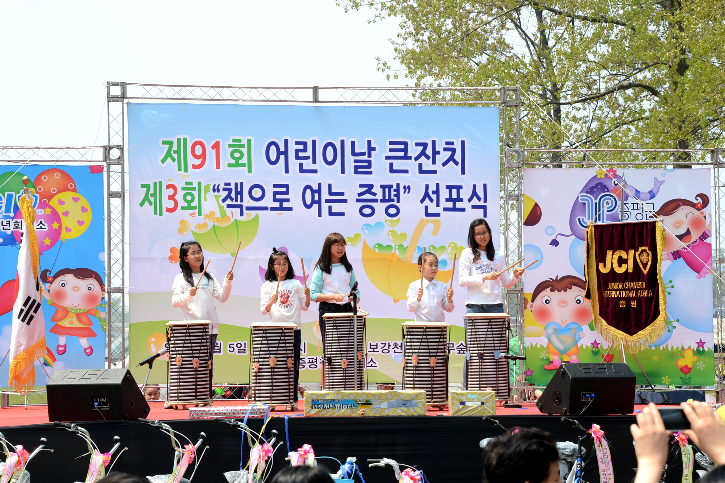 제3회 책으로 여는 증평 선포식이 5일 보강천 미루나무숲 일원에서 어린이와 가족, 주민 등 2천여 명이 참가한 가운데 ‘제91회 어린이날 기념 어린이날 큰잔치’와 함께 열렸다