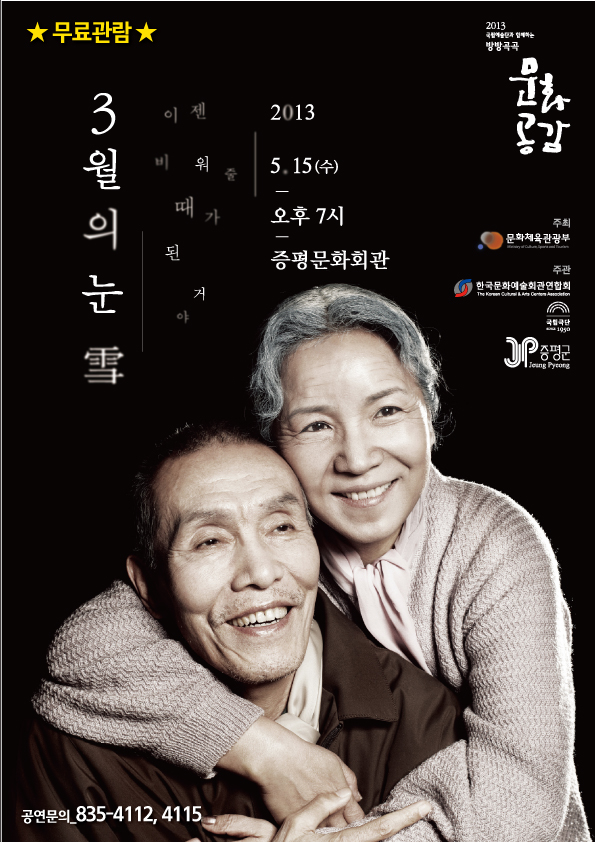 증평군은 문화체육관광부가 주최한 2013 국립예술단 방방곡곡문화공감사업에 선정돼 명품공연 ‘3월의 눈’을 오는 15일 증평문화회관에서 선보인다. [증평보도자료실 참조]