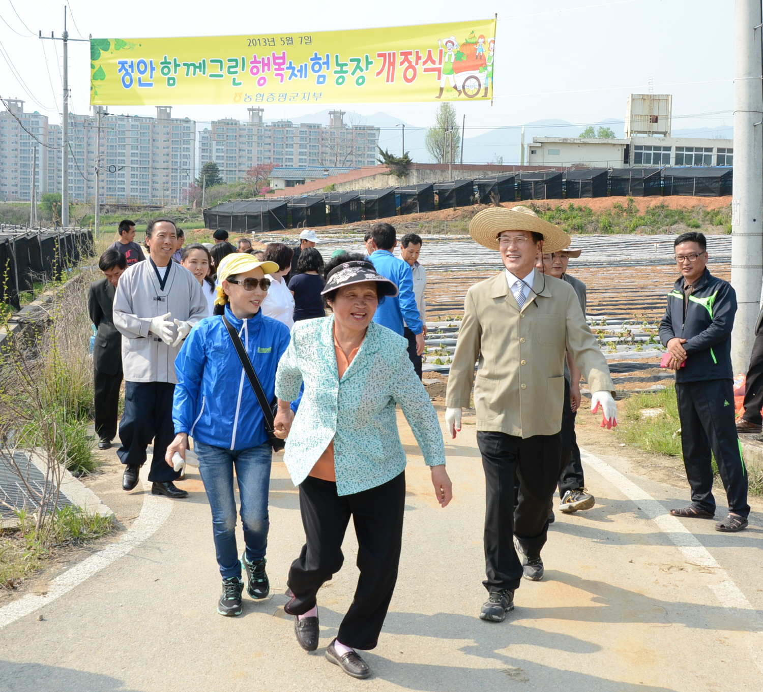 증평군 정안 녹색체험·휴양마을(대표 정영길)에서 8일 홍성열 증평군수, 이하준 NH농협은행 증평군지부장, 김규호 증평농협조합장, 홍석원 KT지사장 등 관계자와 참가자 60여명이 참석한 가운데 녹색체험농장을 개장했다. [보도자료실 참조]
