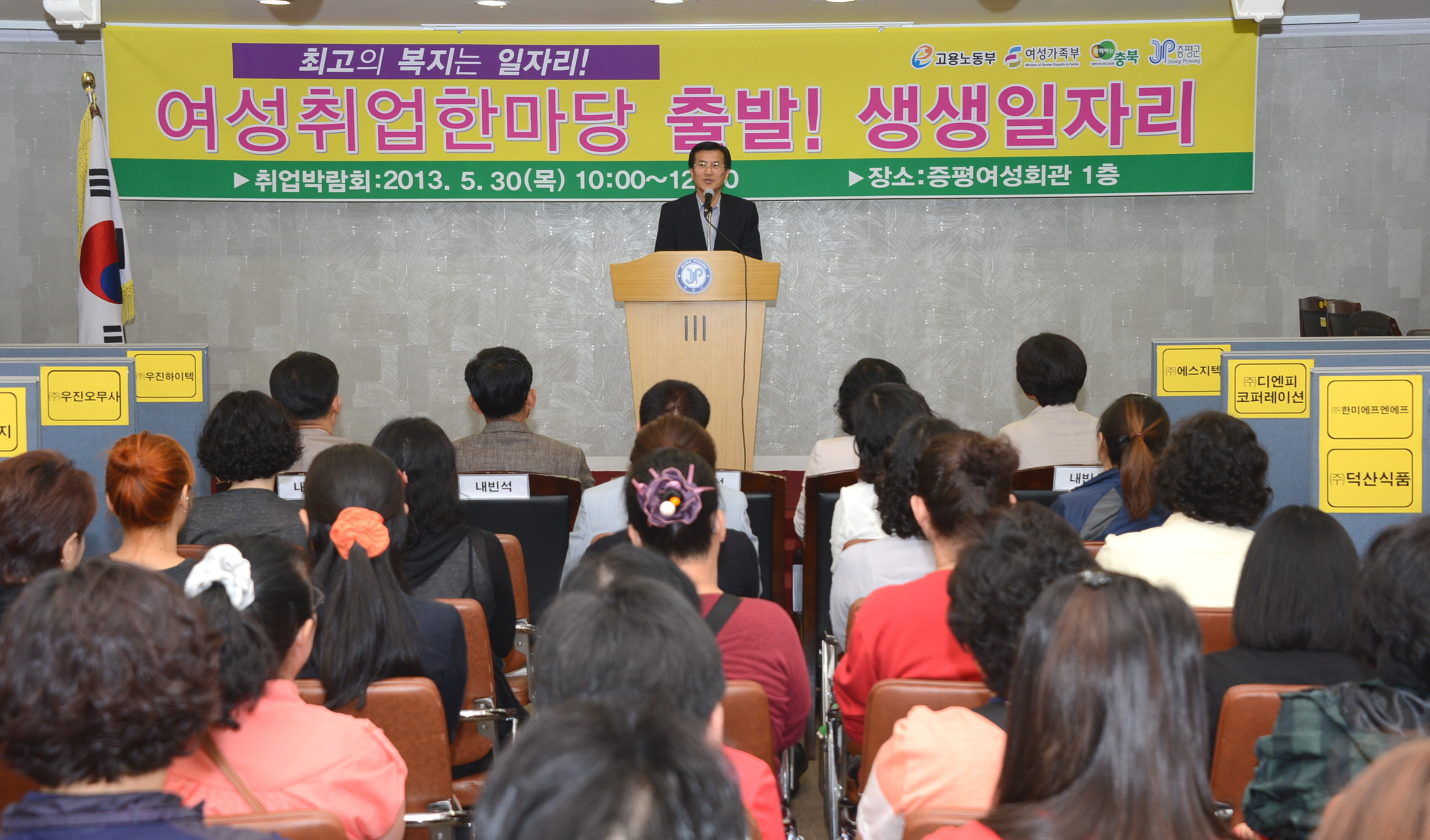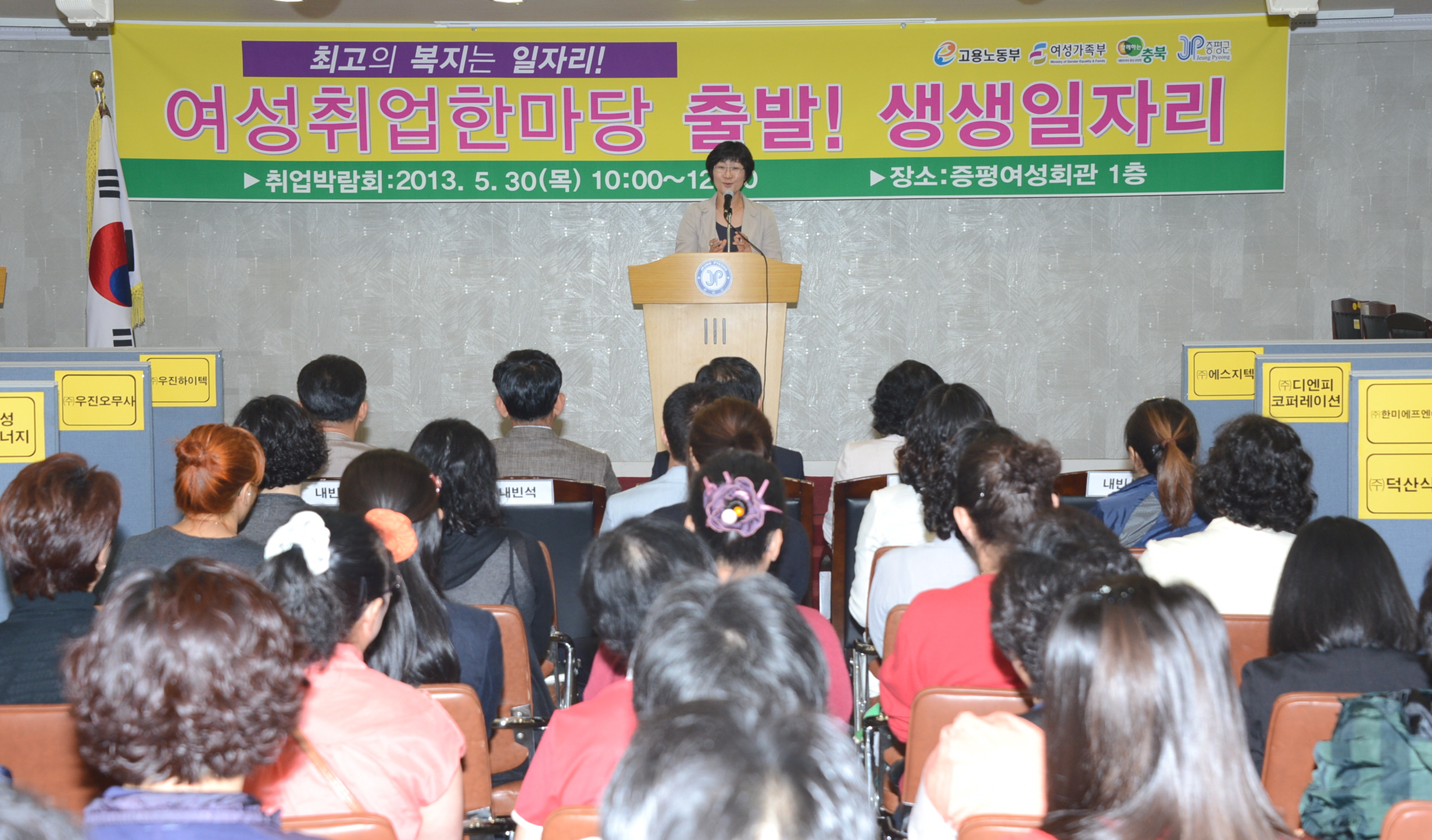 충북여성새로일하기지원본부 증평취업지원센터는 30일 오전 10시 증평여성회관에서 "2013년 여성취업한마당, 출발! 생생일자리" 행사를 개최했다. [보도자료실 참조]