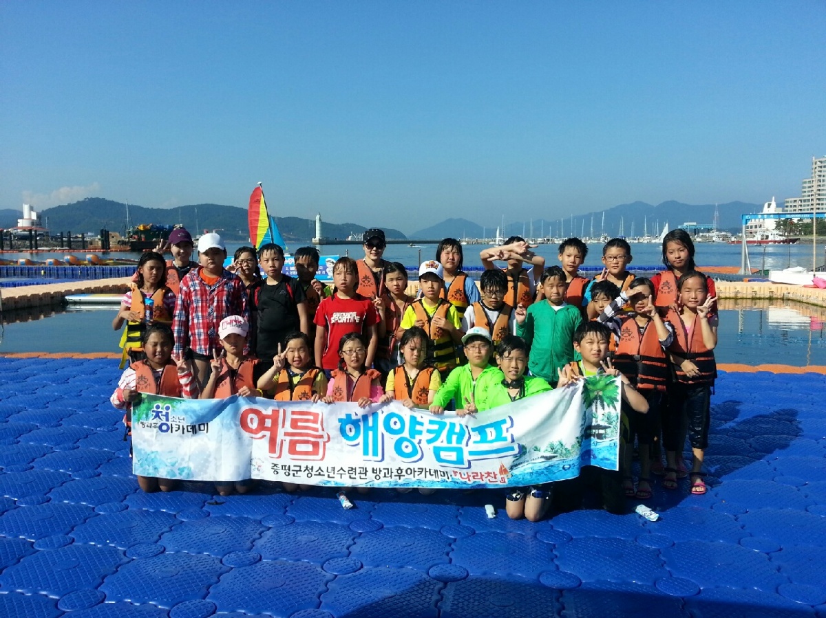 증평군청소년수련관(관장 강경구)의 방과후아카데미 ‘나라찬’ 학생들이 지난 12일부터 14일까지, 2박 3일 동안 통영시청소년수련관에서 개최한 여름해양캠프에 참가했다. [증평보도자료실 참조]