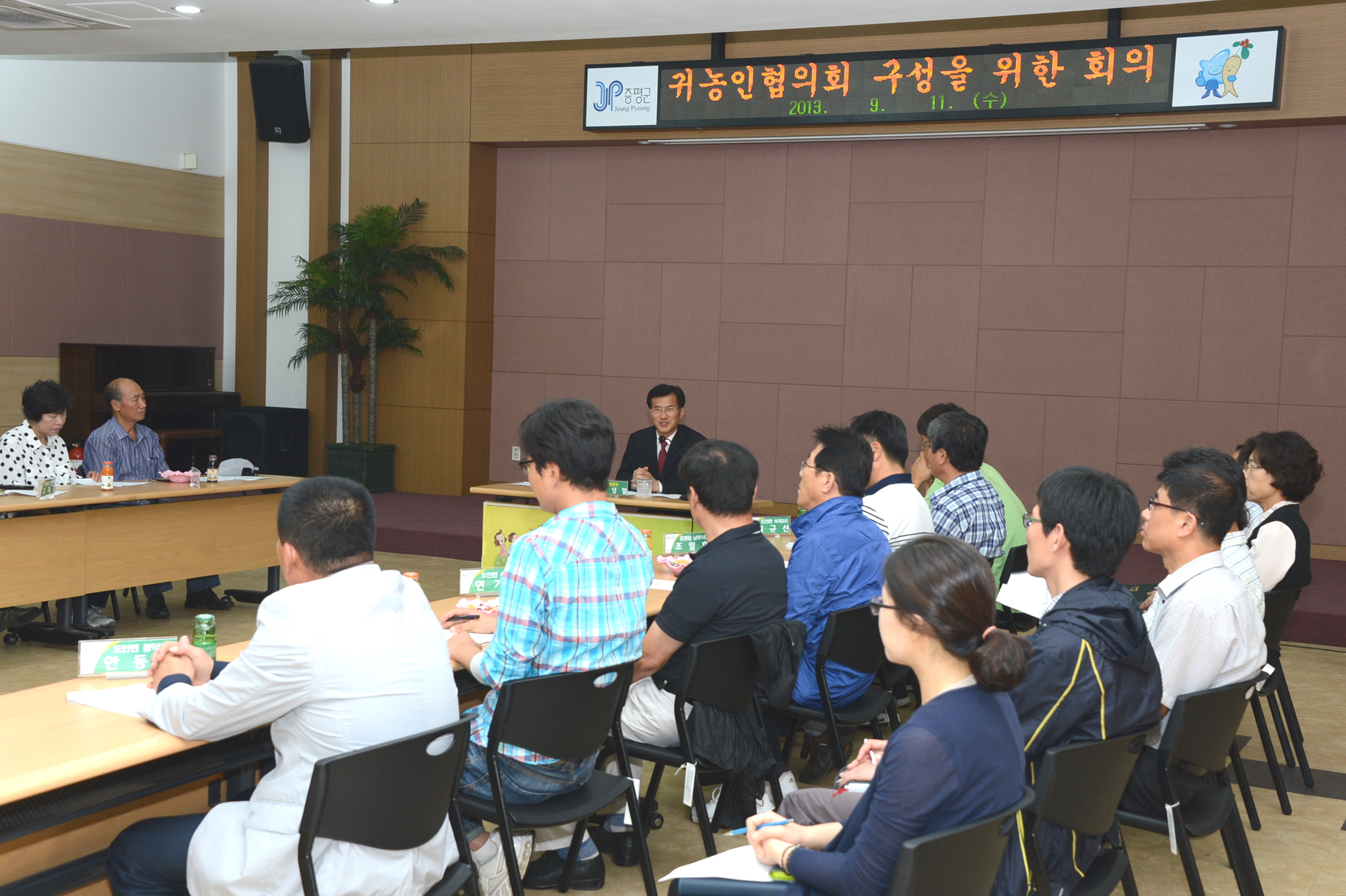 증평군은 11일 오후 3시 군청 대회의실에서 지역내 귀농인 30여명을 대상으로 귀농인 협의회 구성을 위한 모임을 가졌다. [보도자료실 참조]