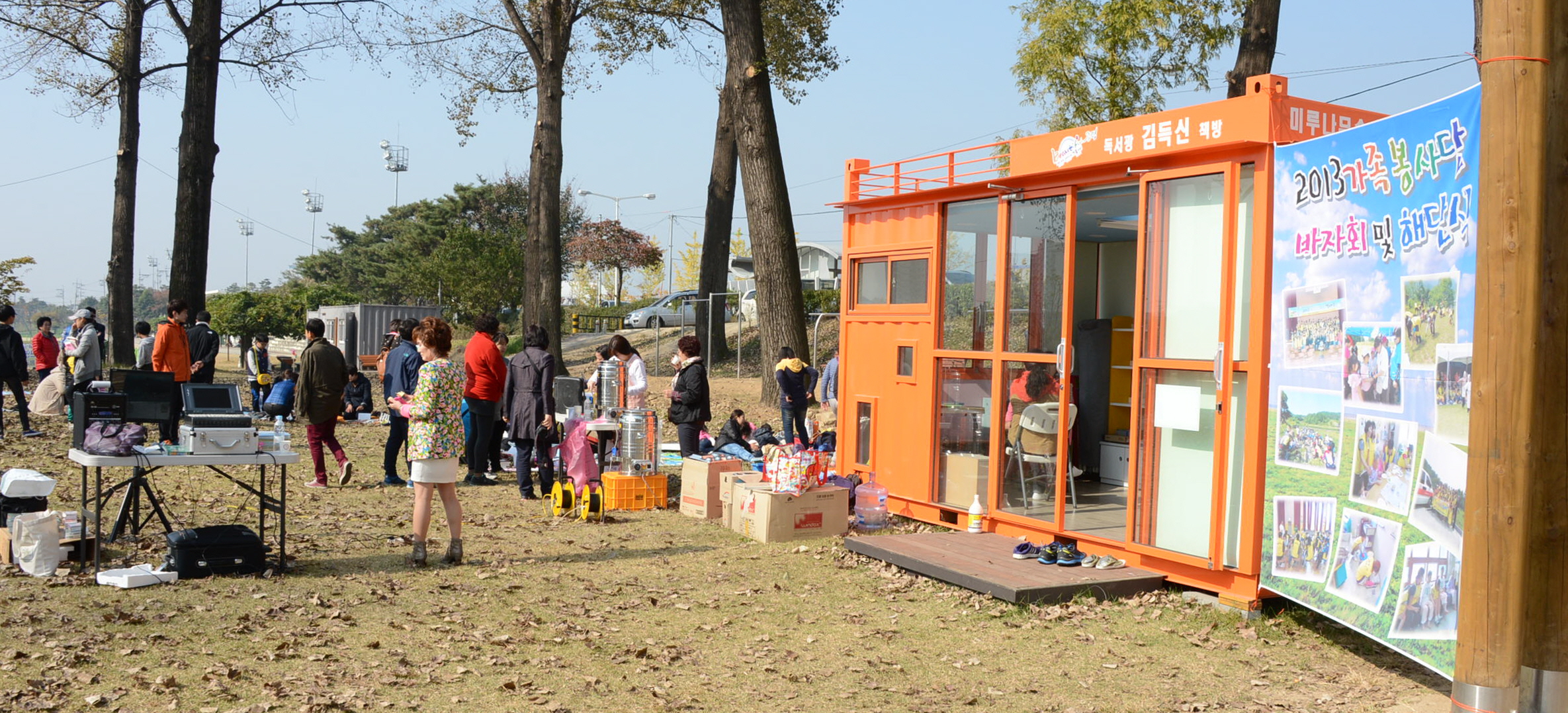 증평군자원봉사종합센터(센터장 김남순) 증평가족봉사단이 26일 보강천 미루나무숲 일원에서 해단식을 겸한 ‘행복나눔 바자회’를 개최했다. [보도자료실 참조]