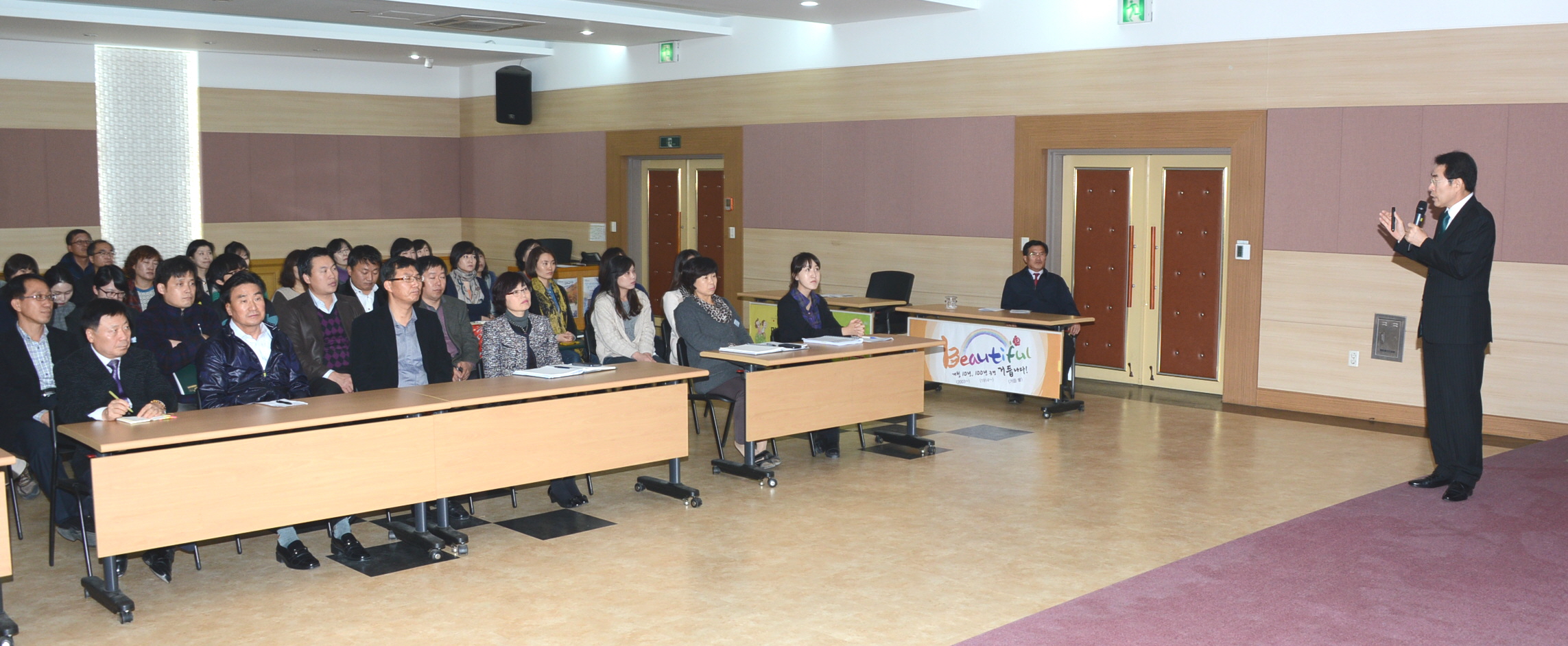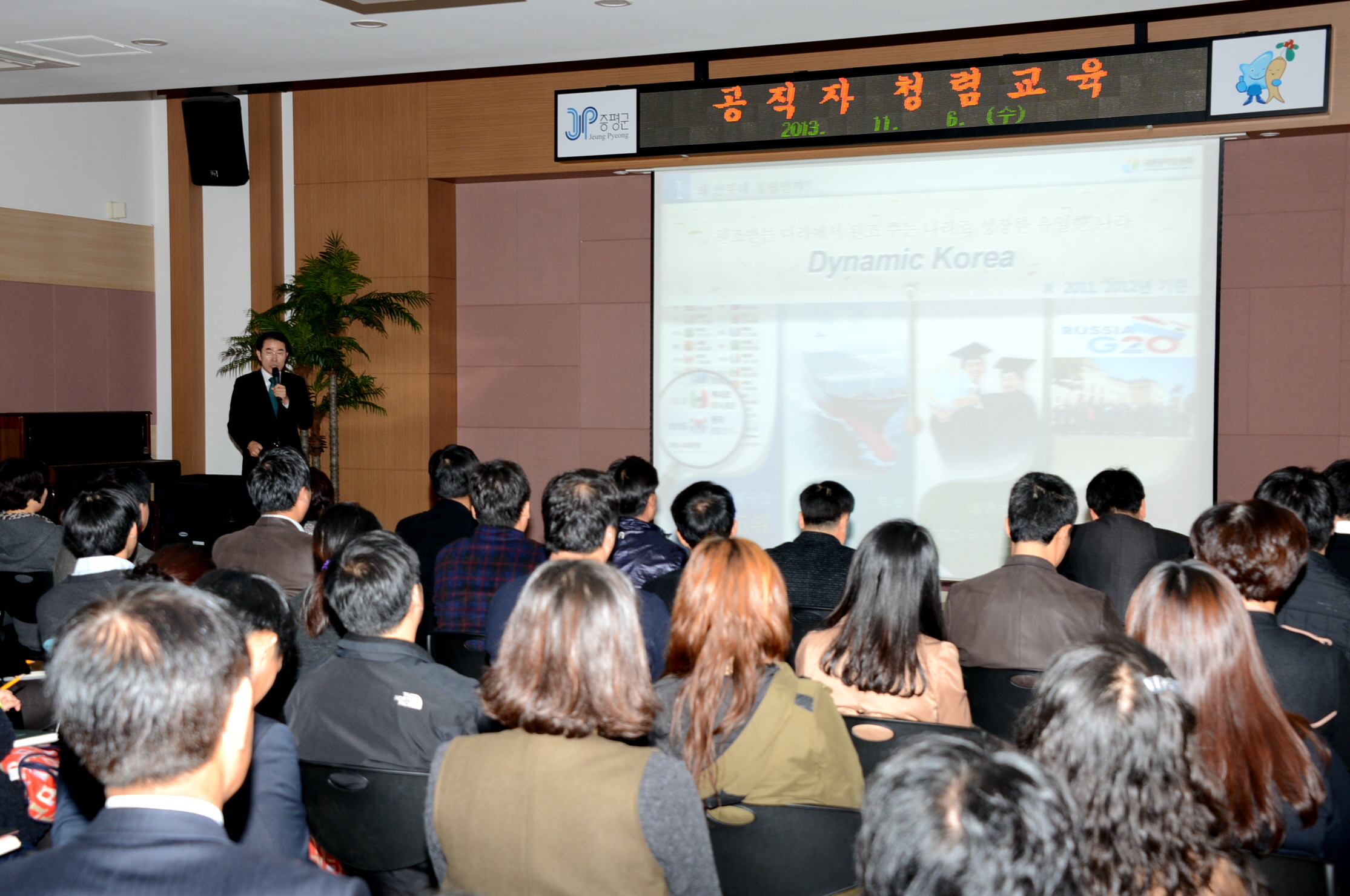 증평군은 6일 오후 2시 군청 대회의실에서 군 산하 공무원 150여명이 참석한 가운데 국민권익위원회 이연흥 고충처리국장을 초청하여 하반기 공직자 청렴교육을 실시했다. [보도자료실 참조]