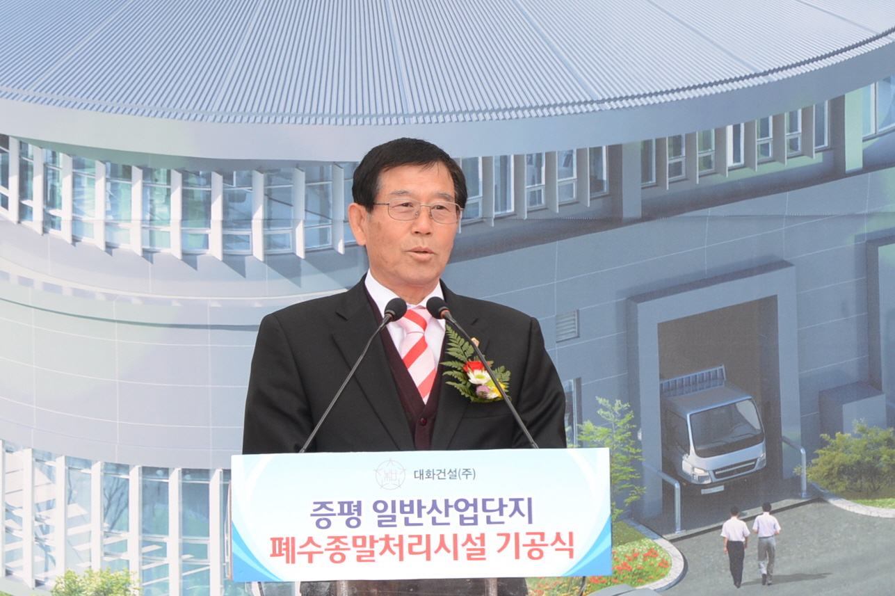 증평군은 14일 증평읍 수질개선사업소에서 홍성열 증평군수, 윤해명 부의장을 비롯한 군의원, 지역인사, 시공사대표, 산업단지입주업체, 주민 등 250여명이 참석한 가운데 증평일반산업단지 폐수종말처리시설 조성 사업 기공식을 개최했다. [보도자료실 참조]