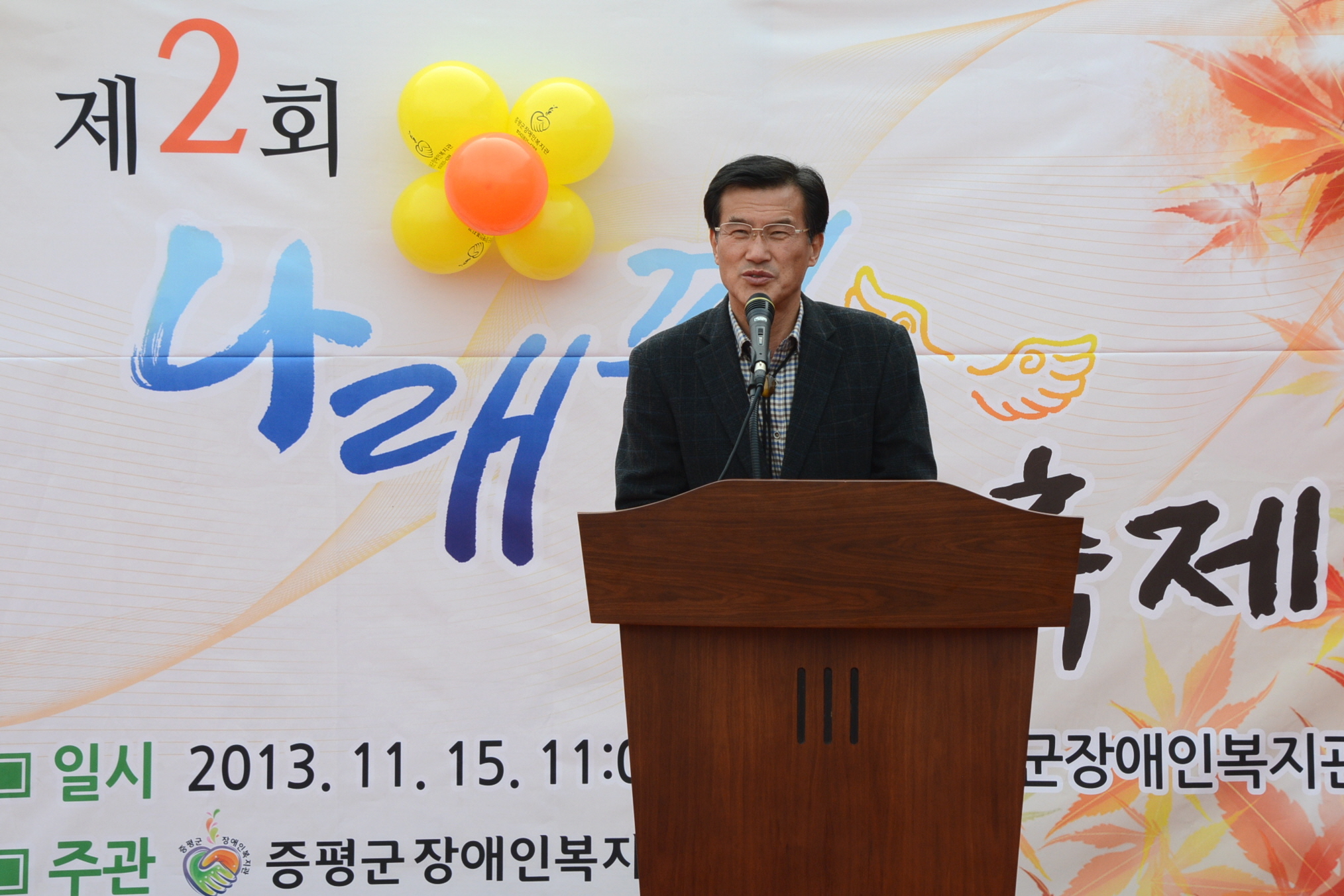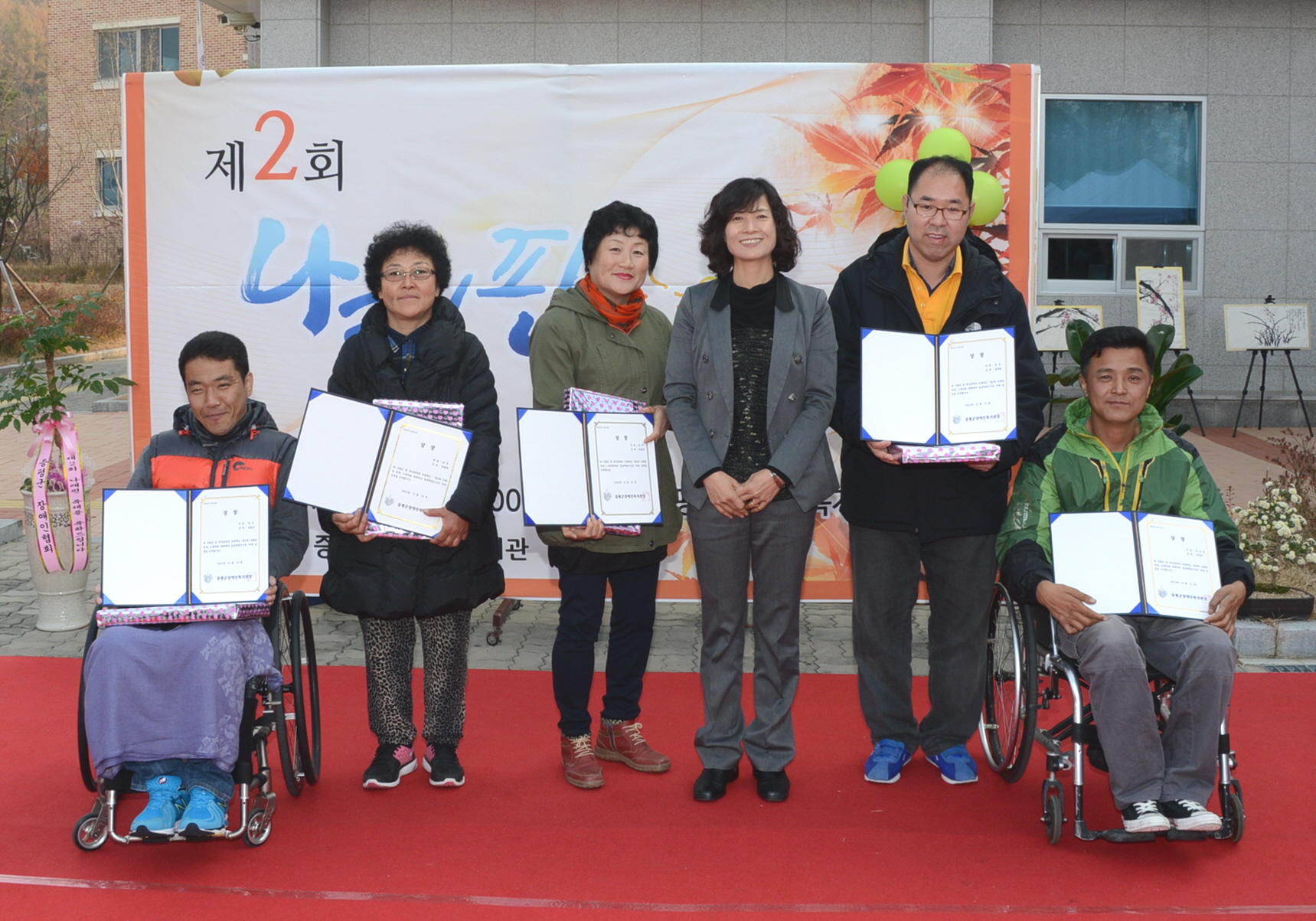 증평군장애인복지관은 15일 복지관 마당에서 올해 장애인복지 사업파트너로 활동한 자원봉사자와 후원자 및 홍성열 증평군수, 지역인사 등 300여 명이 참석한 가운데 그간의 활동을 격려하기 위해 ‘제2회 나래핀 축제’를 개최했다. [보도자료실 참조]