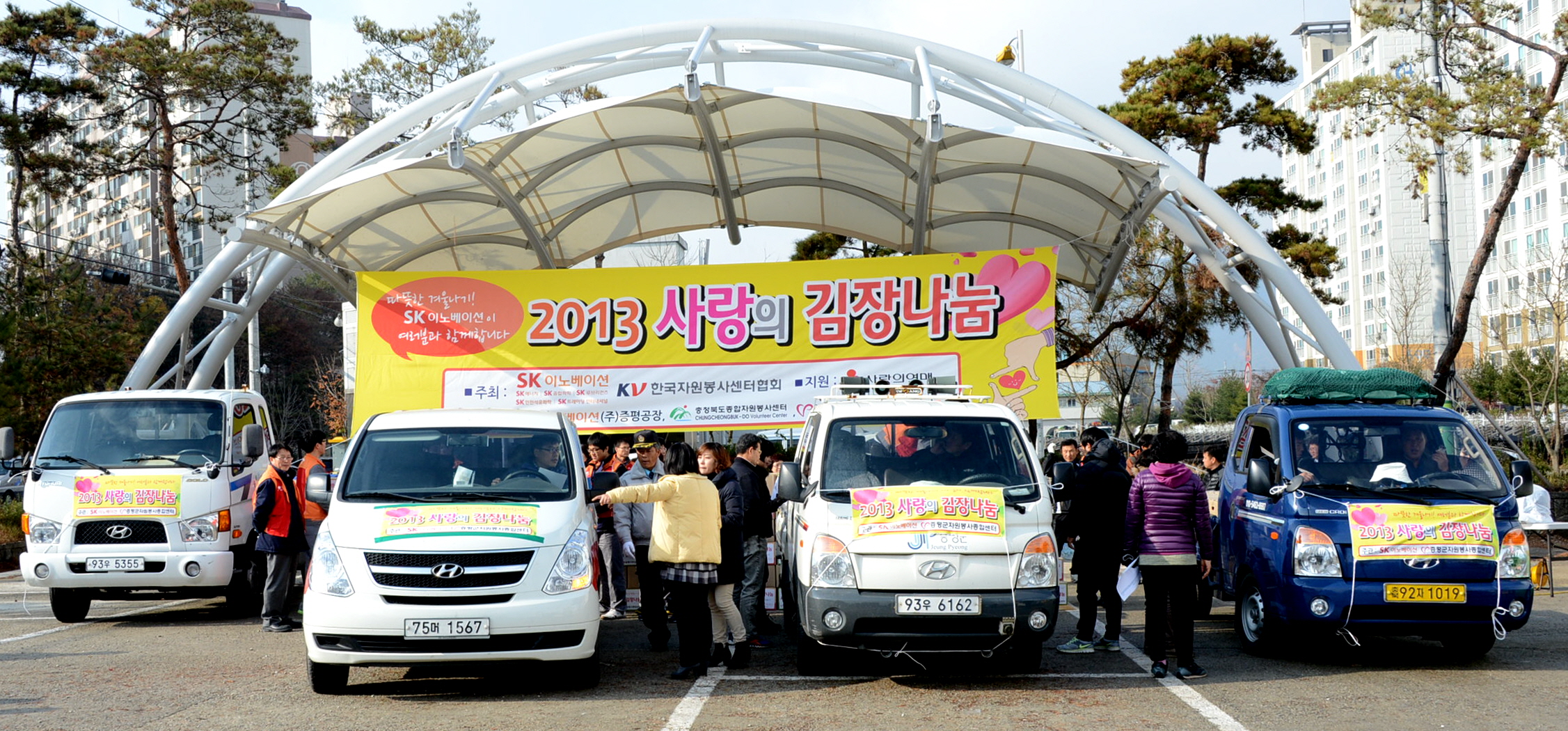 증평군자원봉사종합센터(센터장 김남순)와 SK이노베이션(공장장 김형욱)은 19일 오후 1시30분부터 증평문화센터 야외광장에서 ‘2013 사랑의 김장나누기 행사’를 실시했다. [보도자료실 참조]