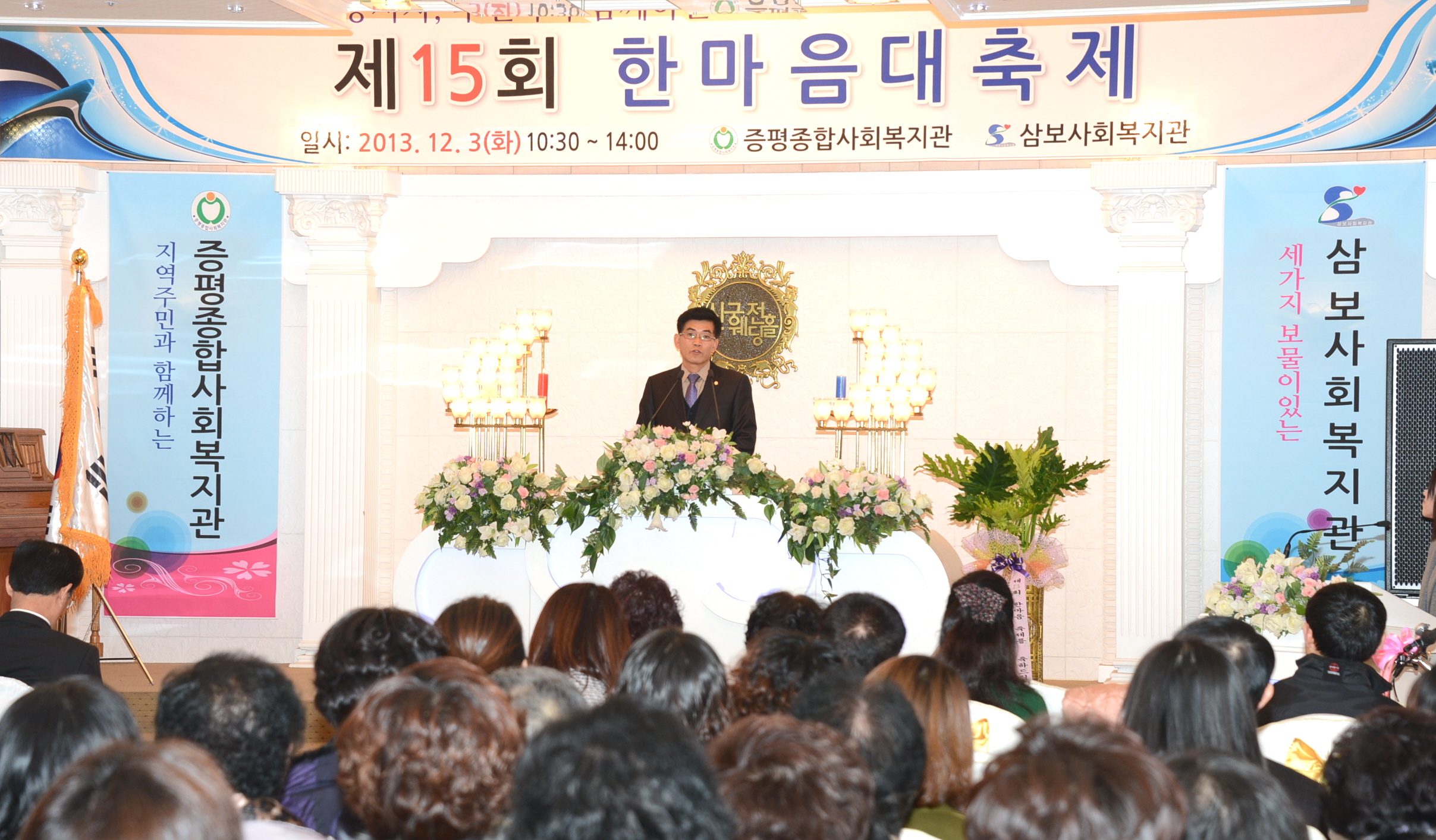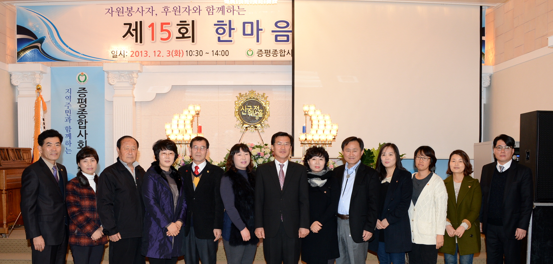 증평군에서는 자원봉사자와 후원자, 봉사대상자 등 100여명이 참석한 가운데 15회 한마음대축제 행사가 3일 신궁전웨딩홀에서 열렸다. [보도자료실 참조 ]