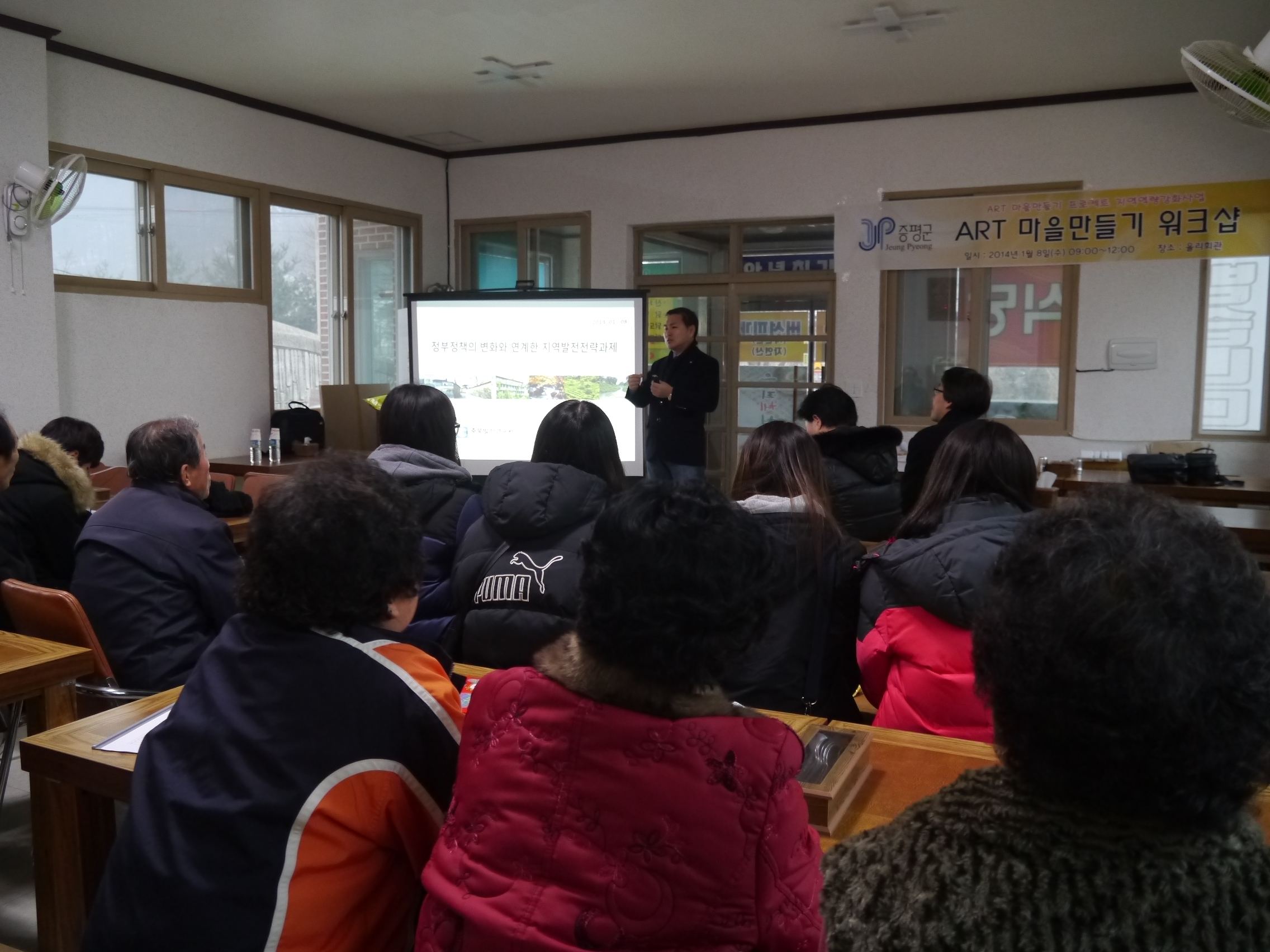 증평군은 8일 증평읍 율리 마을회관에서 마을 주민 20여명들을 대상으로 Art마을 만들기 워크숍을 개최했다. [증평보도자료실 참조]