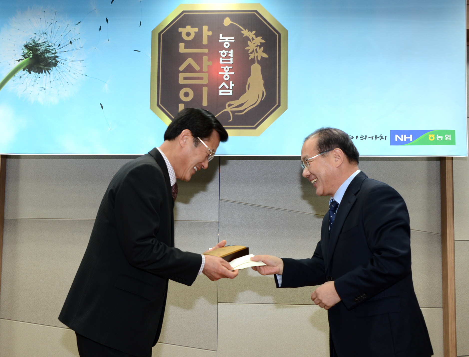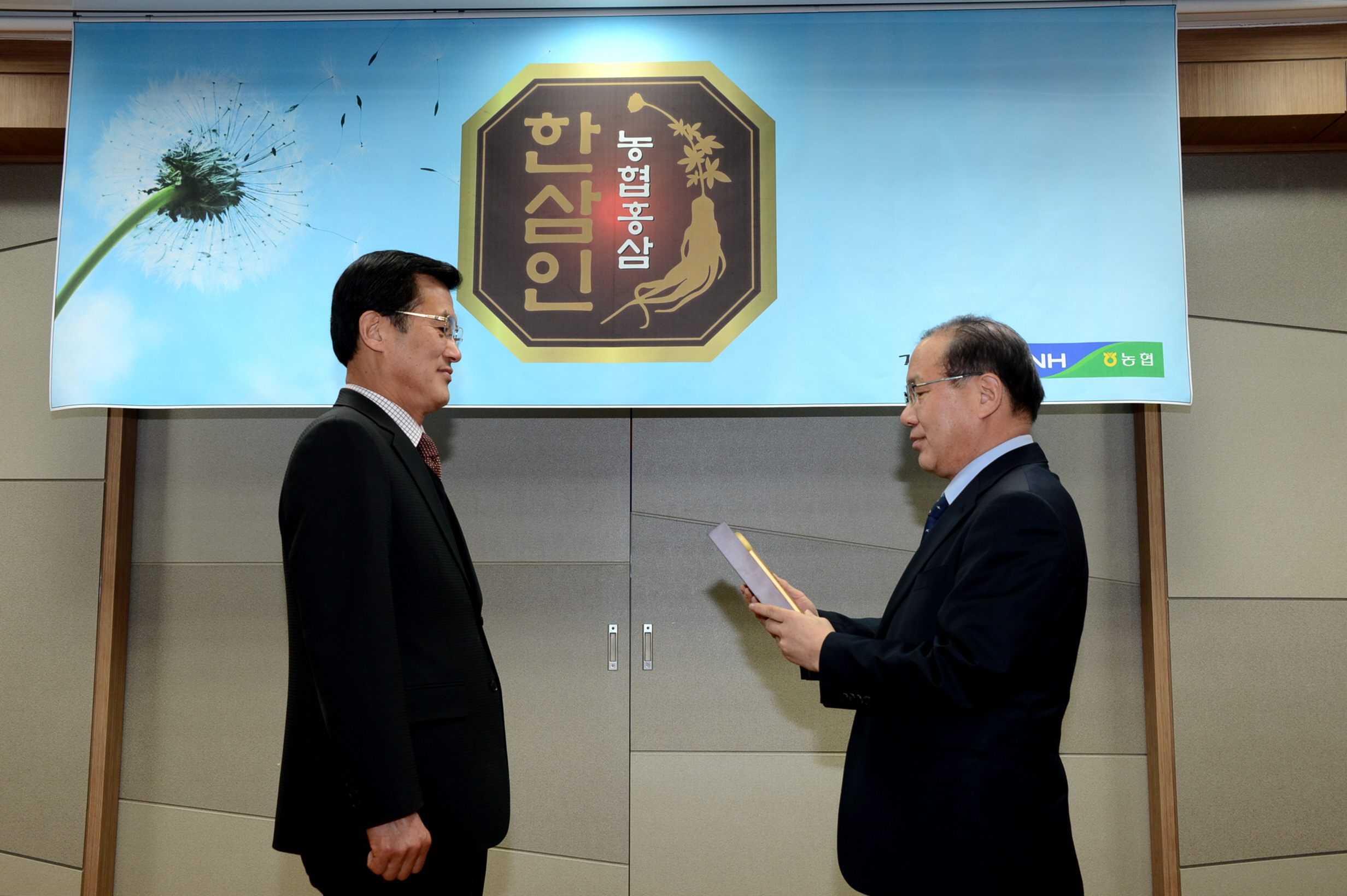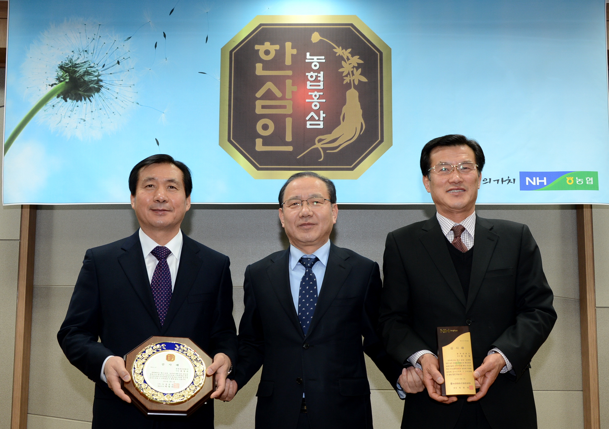 홍성열 증평군수가 4일 인삼산업 발전에 기여한 공로로 2014년 농협중앙회 회장(최원병)으로부터 감사패를 받았다. [보도자료실 참조]