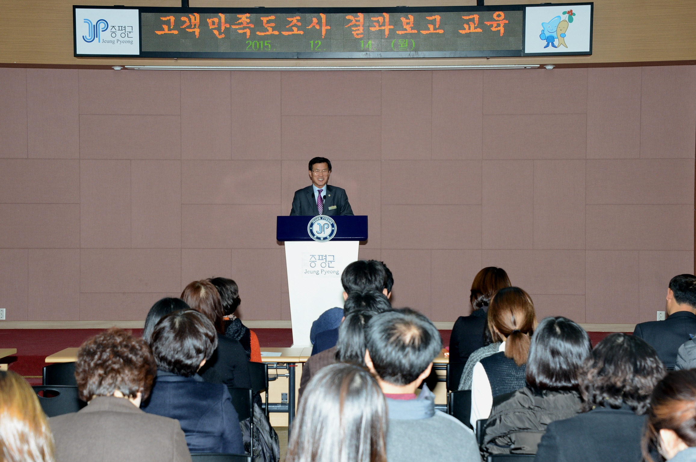 증평군은 14일 오후 2시 군청 대회의실에서 직원을 대상으로 정부합동평가 대비 민원서비스 제공 전반에 대한 ‘증평군 고객만족도 조사 용역’을 실시했으며 이에 대한 결과보고 및 개선교육을 가졌다.(보도자료실 참조)
