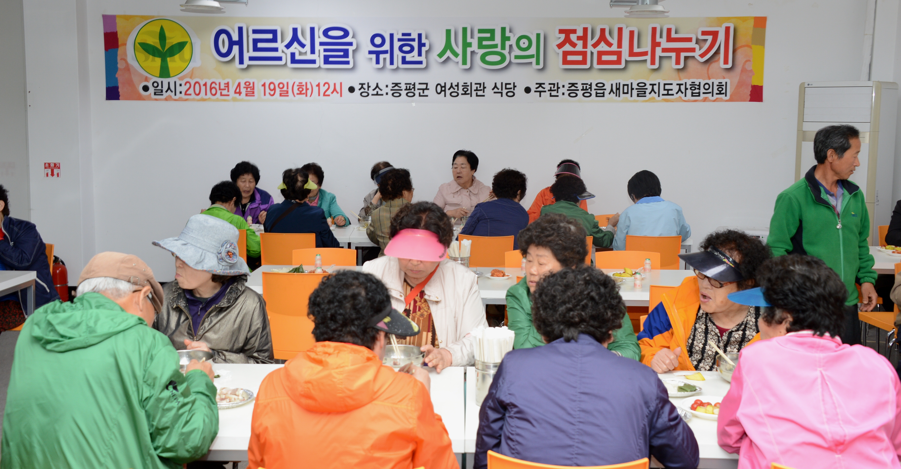 새마을지도자증평읍협의회(회장 봉왕종)는 19일 오전 11시 회원 30명이 참석한 가운데 증평여성회관 지하 1층 식당에서 올해 처음으로 증평 어르신들을 대상으로 ‘사랑의 점심나누기’ 행사를 가졌다.