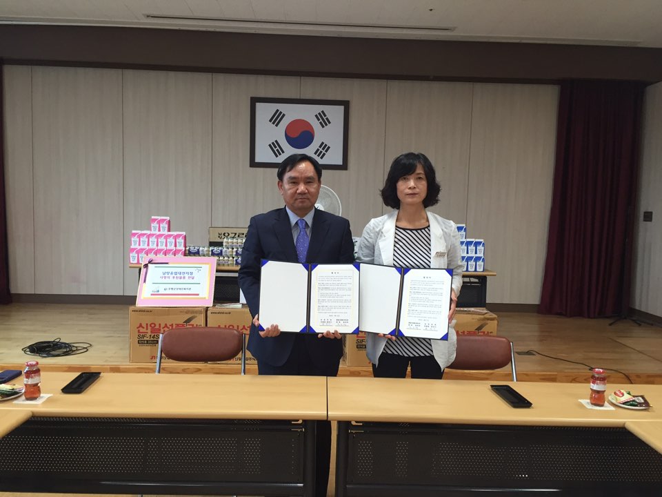 증평군장애인복지관(관장 정찬연)은 재가장애인의 삶의 질적 향상을 위하여 남양유업 대전지점(지점장 문찬기)와 업무협약을 체결하였다.[보도자실 참조]