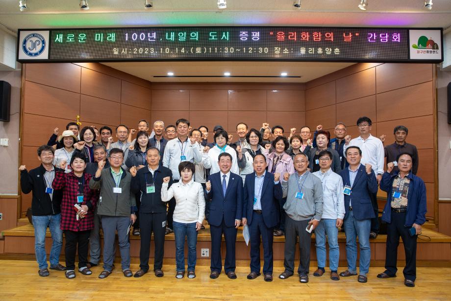 충청북도 증평군은 14일 율리휴양촌에서 율리 화합의 날 간담회를 개최했다.