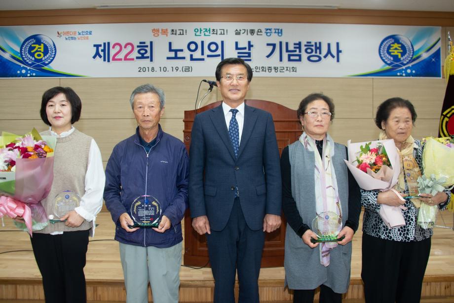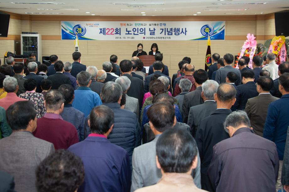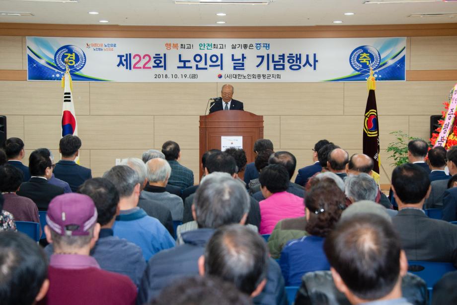 (사)대한노인회증평군지회(회장 연훈흠)가 주관하는 제22회 노인의 날 기념행사가 19일 증평읍 신동리 증평군 노인회관에서 개최됐다.