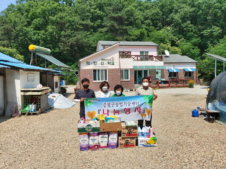 증평군농업기술센터(소장 오은경)가 도안면 소재 장애인 복지시설 의인신학교에 35만원 상당의 생필품을 전달했다.