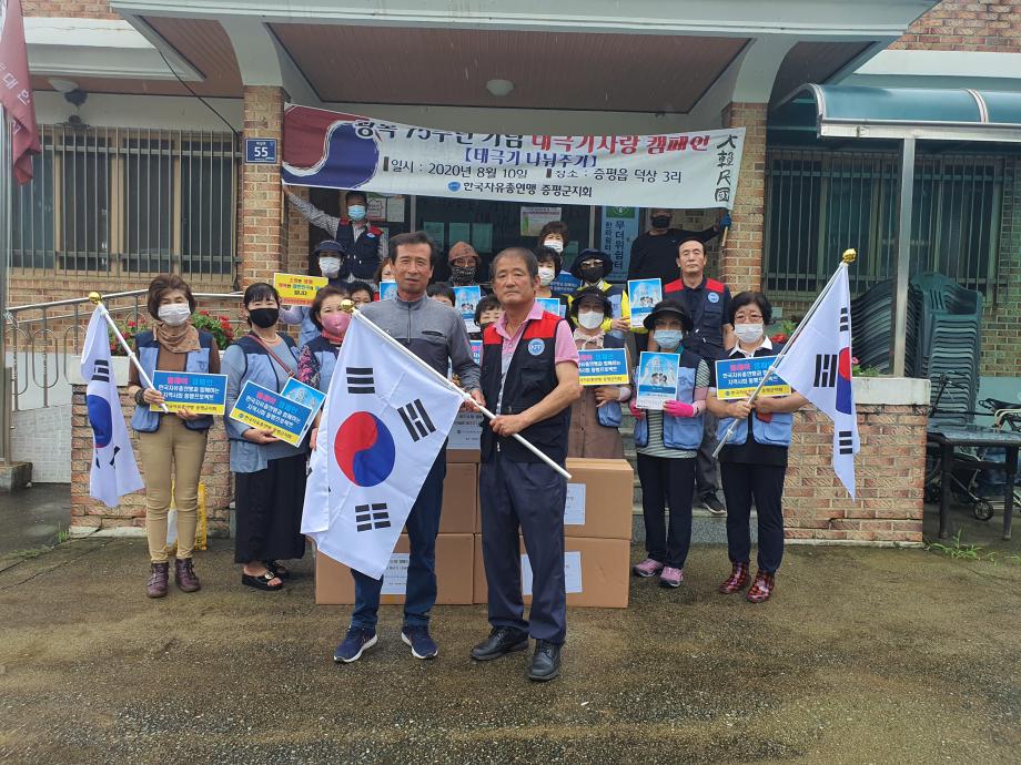 한국자유총연맹증평군지회(회장 송원호)는 광복 75주년을 맞아 국권회복을 기념하기 위해 지난 10일 증평읍 창동1리, 덕상3리와 도안면 석곡1,2리에서 태극기 사랑 캠페인을 펼쳤다.
