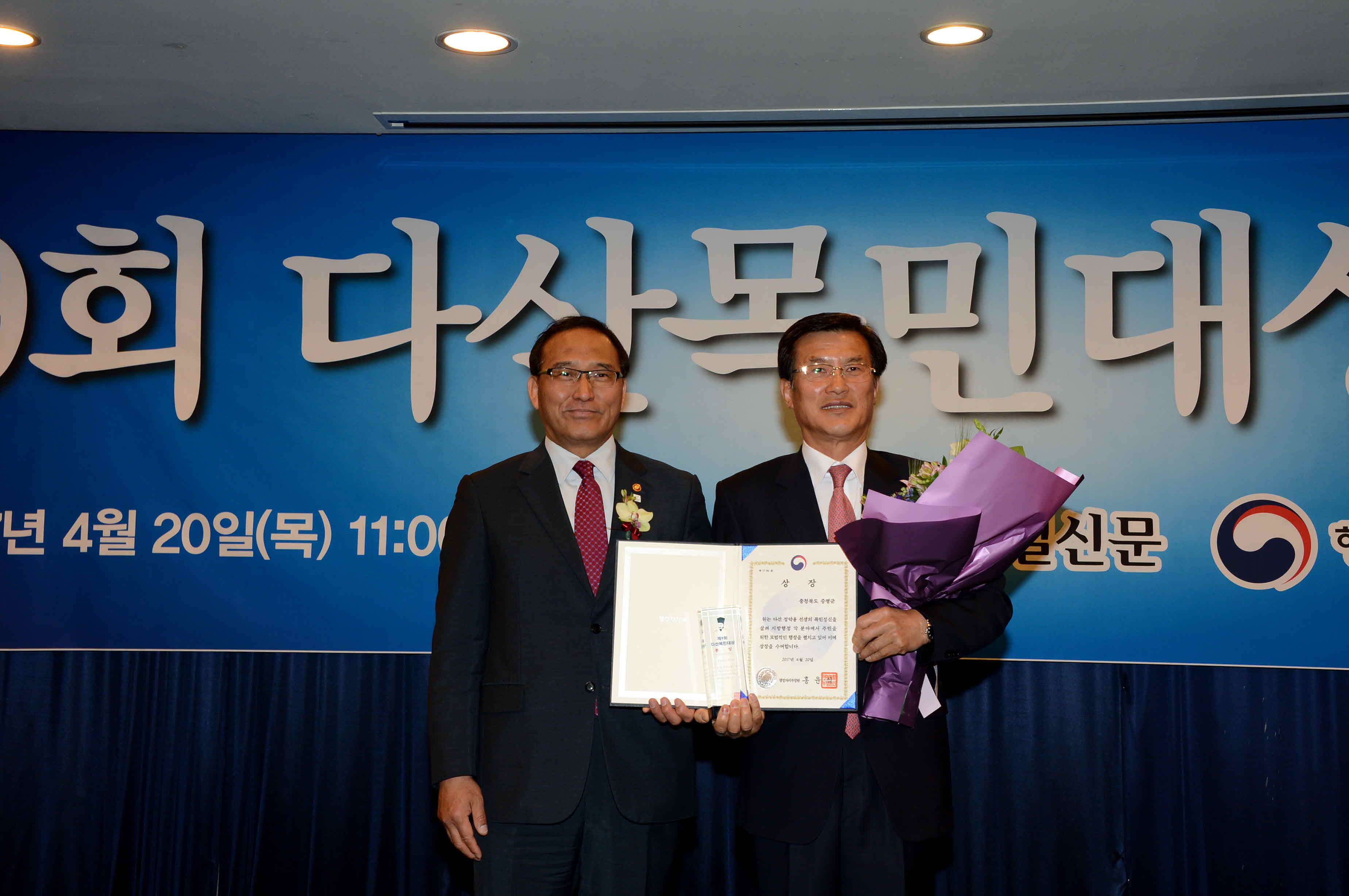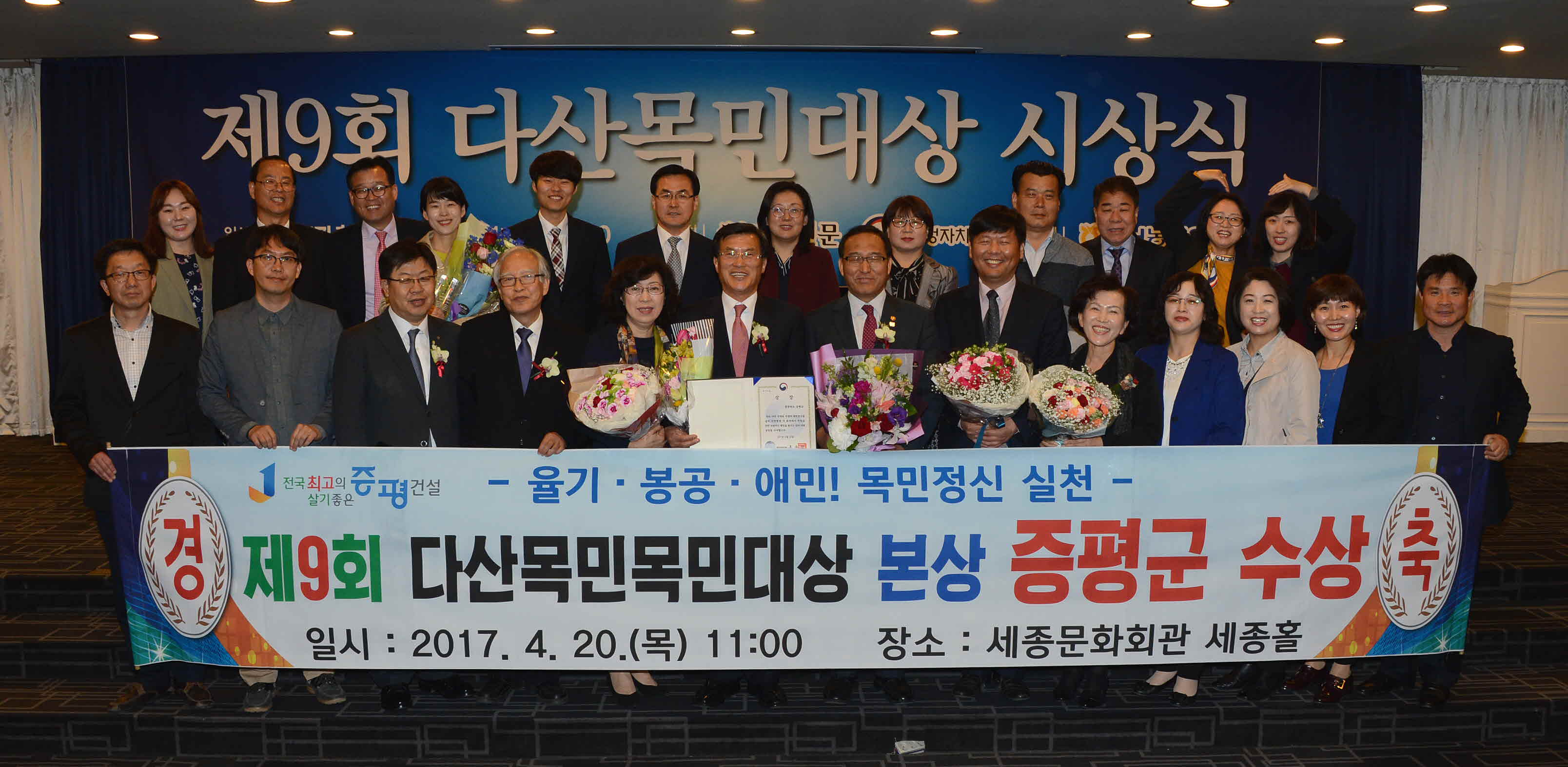 증평군은 20일 서울 세종문화회관에서 열린 제9회 다산목민대상 시상식에서 본상을 수상했다.[보도자료실 참조]