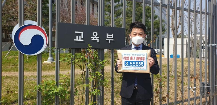 “증평 송산지구 초등학교 신설”교육부에 서명부 전달