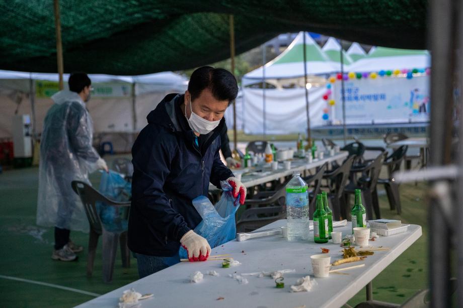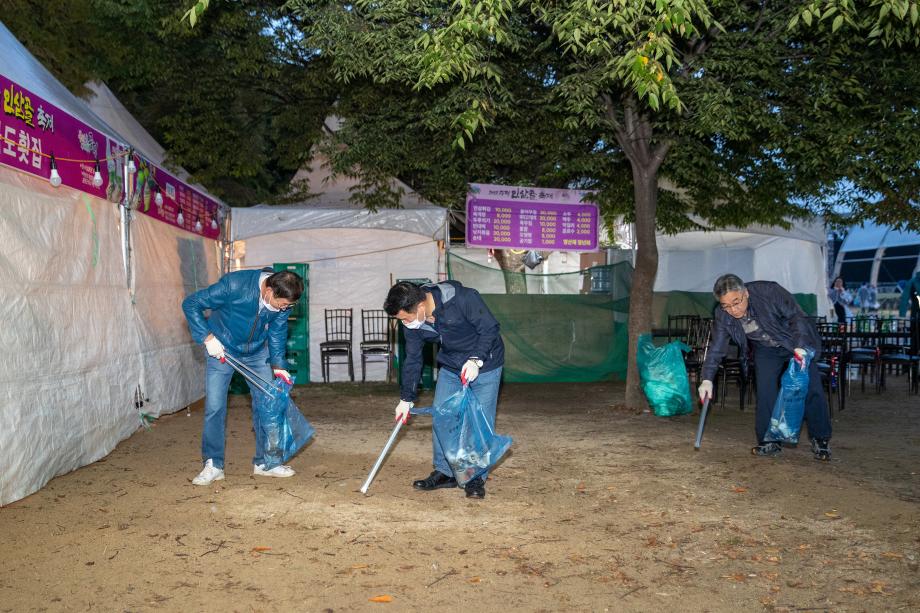 이재영 증평군수는 취임 100일을 맞이해 이른 새벽 증평인삼골축제가 열리고 있는 보강천 미루나무 숲 일원에서 청소 봉사 활동을 실시 했다.