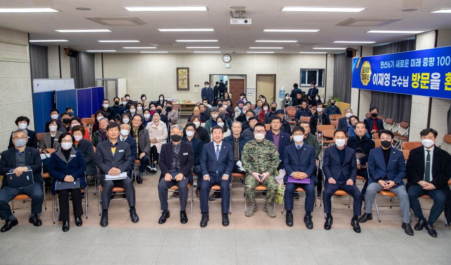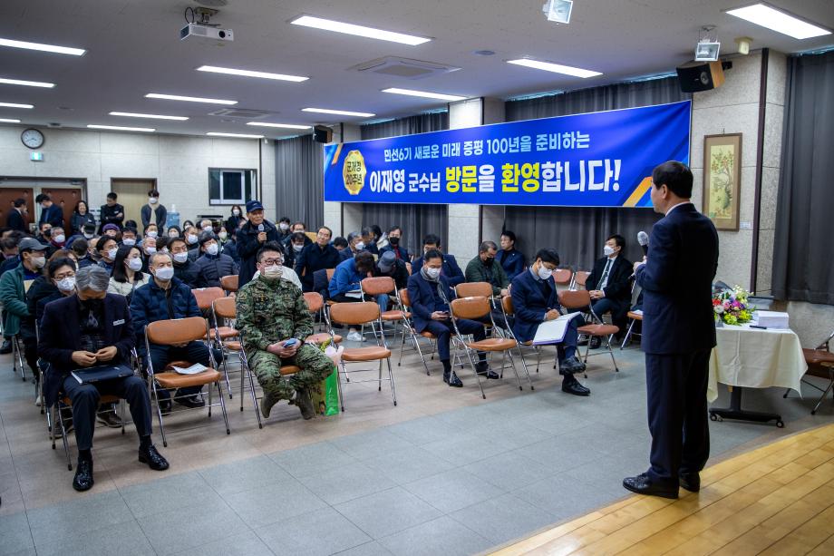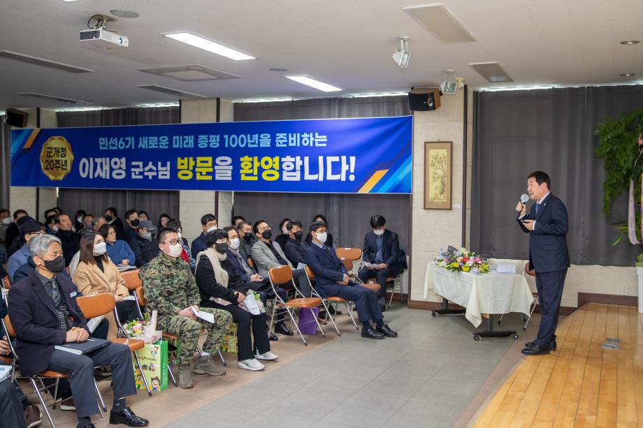 이재영 증평군수는 증평군 개청 20주년을 맞이하여 지난 30일과 31일 양일간 증평읍과 도안면을 방문해 『타운 홀 미팅』방식으로 군정 정책설명회 주민과의 대화를 가졌다.