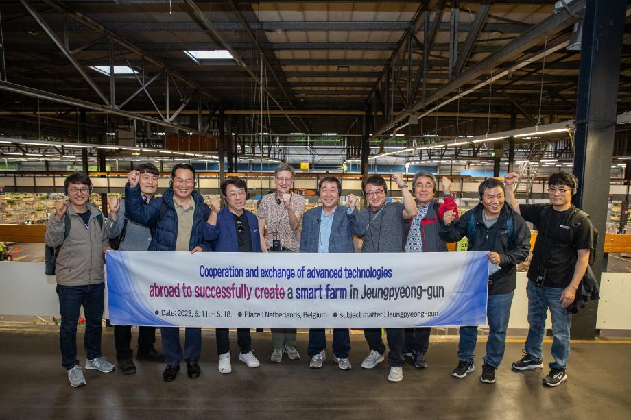 증평군은 성공적인 스마트팜 조성을 위해 네덜란드 연수 첫날 세계 최대 화훼경매장인 알스미어(Aslsmeer)와 유리온실 건설기술 협력 등 교류 협의를 위해 달셈사(Dalsem)의 유리온실 건설 공장을 벤치마킹했다.