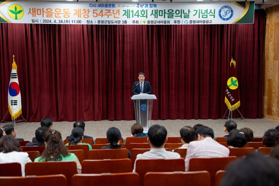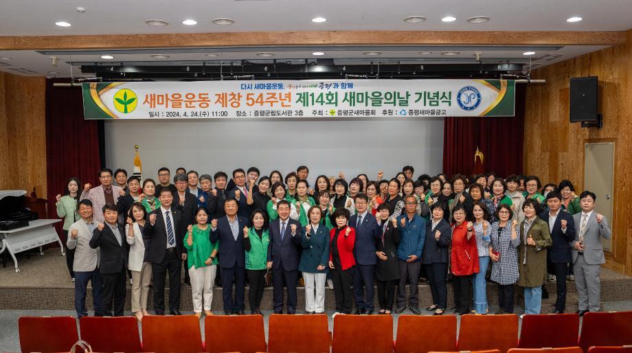 증평군새마을회(회장 김은영)는 24일 증평군립도서관에서 ‘새마을운동제창 54주년 제14회 새마을의 날’기념식을 성황리에 개최했다.