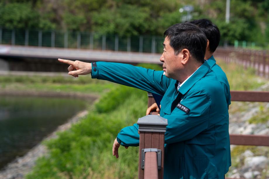 이재영 증평군수가 지난 20일 우기 대비 저수지 현장점검에 나섰다.