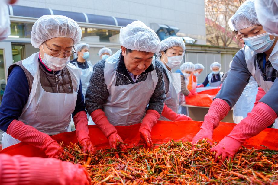 증평군청 인삼씨름단, 김장 봉사로 따뜻한 온정 나눠