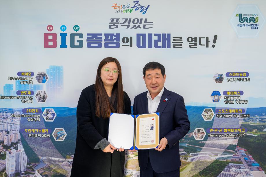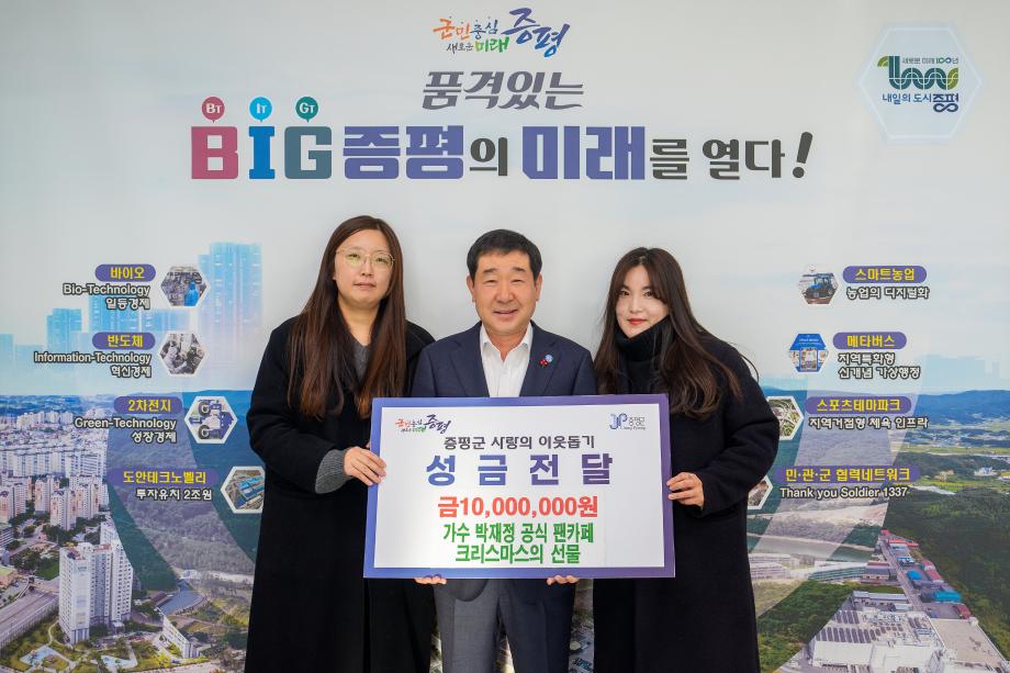 가수 박재정 공식 팬카페 '크리스마스의 선물', 증평군 취약계층 위해 1000만원 기부