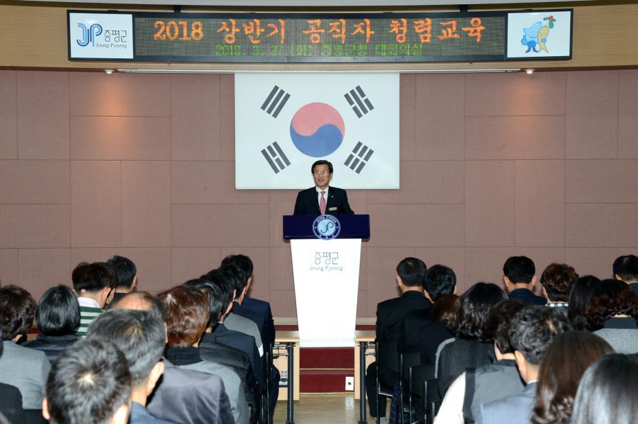 증평군은 27일 대회의실에서 전 직원 대상으로 국민권익위원회 청렴연수원 정해숙 전문강사(The바른교육 원장)을 초청하여‘청렴한 당신이 증평군의 미래입니다!’라는 주제로 2018 상반기 공직자 청렴교육 실시했다.(보도자료실 참조)