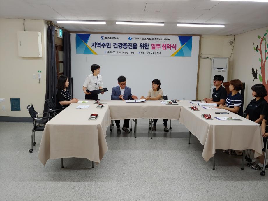 삼보사회복지관(관장 박경화)과 증평군체육회(회장 홍성열 증평군수) 증평체력증진센터는 30일 지역주민들의 건강증진 및 삶의 질 향상을 위해 다양한 사업을 추진하기 위해 업무협약(MOU)을 체결했다.