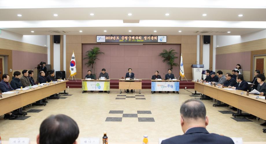 증평군체육회(회장 홍성열)는 27일 오전11시 군청대회의실에서 대의원 40여명이 참석한 가운데 2019년도 정기총회를 개최했다.