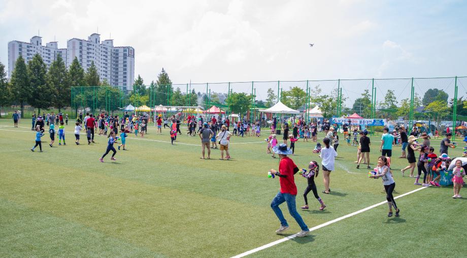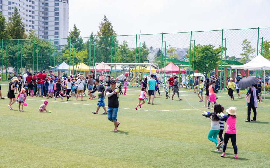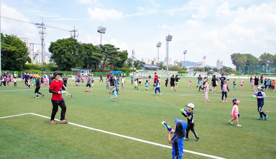증평군은 지난 3일 증평읍 송산리 보강천 첨벙첨벙 물놀이장에서 ‘보강천 i –조아 물총대전’을 개최했다.