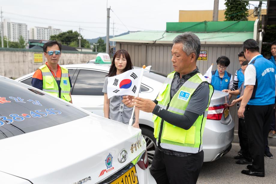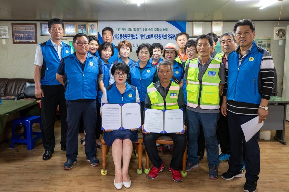 바르게살기운동 증평군협의회(회장 전명임)와 개인(모범)택시증평지회(회장 진익상)가 제 74주년 광복절을 앞둔 12일 모범운전자회 사무실에서 업무협약을 체결하고 태극기 달기 운동에 힘을 모으기로 했다.