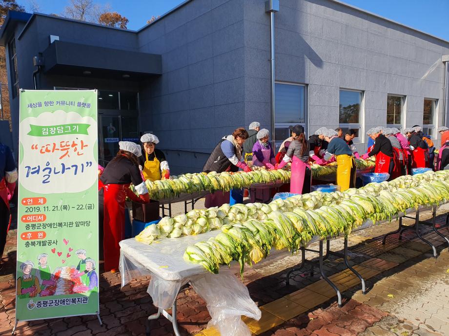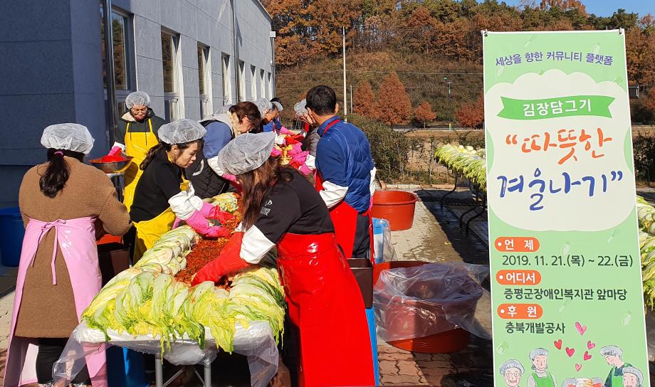 증평군장애인복지관(관장 정찬연)은 22일 증평읍 내성리 증평군장애인복지관에서 따뜻한 겨울나기 김장담그기 행사를 추진했다.