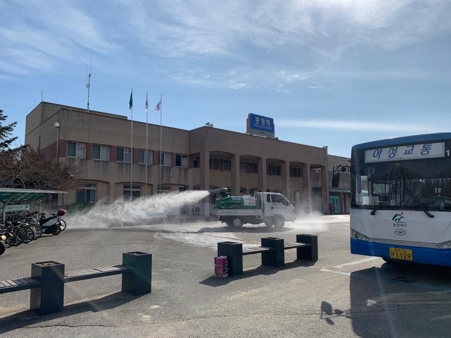 다중이용시설 중심으로 하루 한차례씩 방역차량을 이용해 도심지를 중심으로 소독을 실시한다.