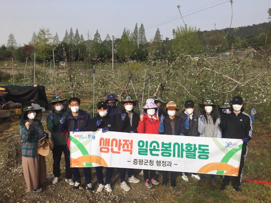 증평군 행정과 직원 20여명은 지난 17일, 18일 이른 아침부터 증평읍 연탄리 일원의 과수 농가를 방문해 생산적 일손봉사 활동을 실시했다.