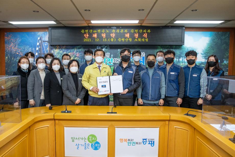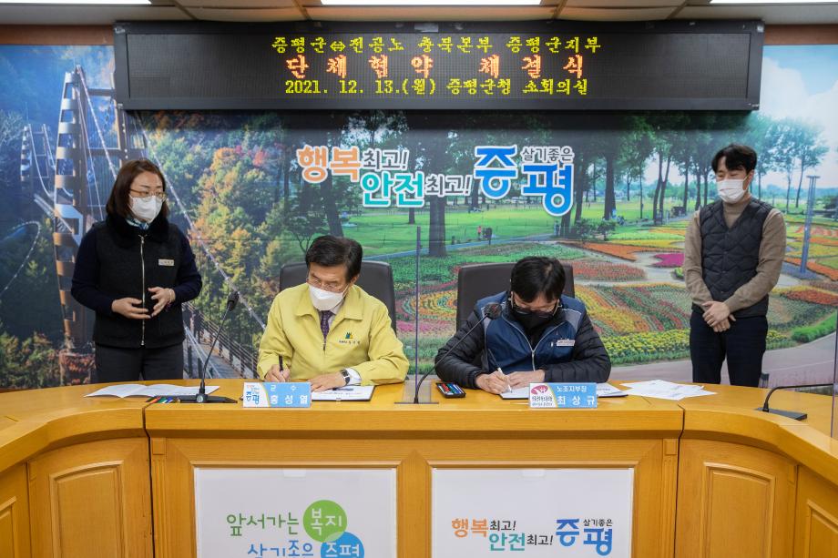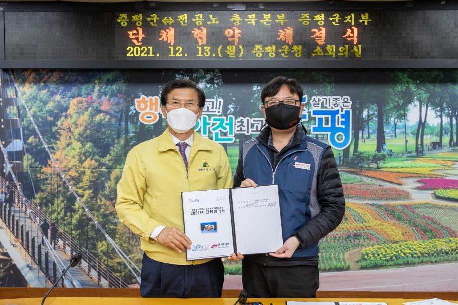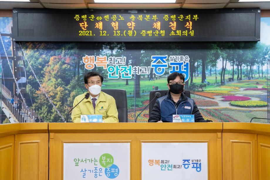 증평군은 13일 군청 소회의실에서 전국공무원노동조합 충북본부 증평군지부(지부장 최상규)와 단체협약 체결식을 개최했다.