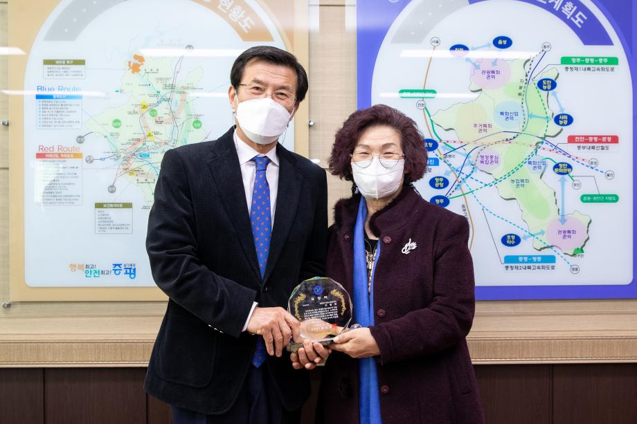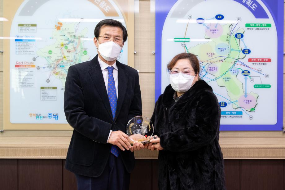 증평군은 18일 군수 집무실에서 2021년 하반기 우수 자원봉사자 표창패 수여식을 개최했다.