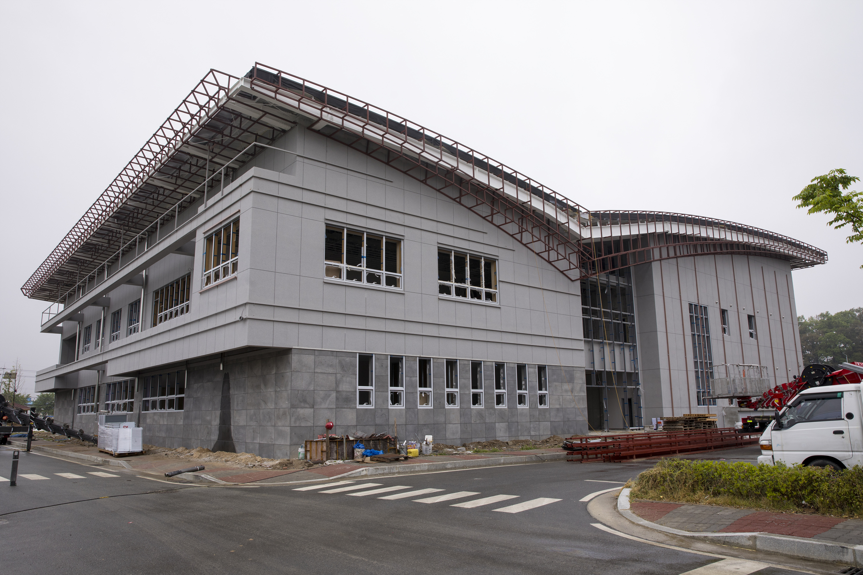 증평읍 연탄리에 조성중인 증평생활체육관이 오는 7월 개관을 앞두고 마무리 공사가 한창이다.