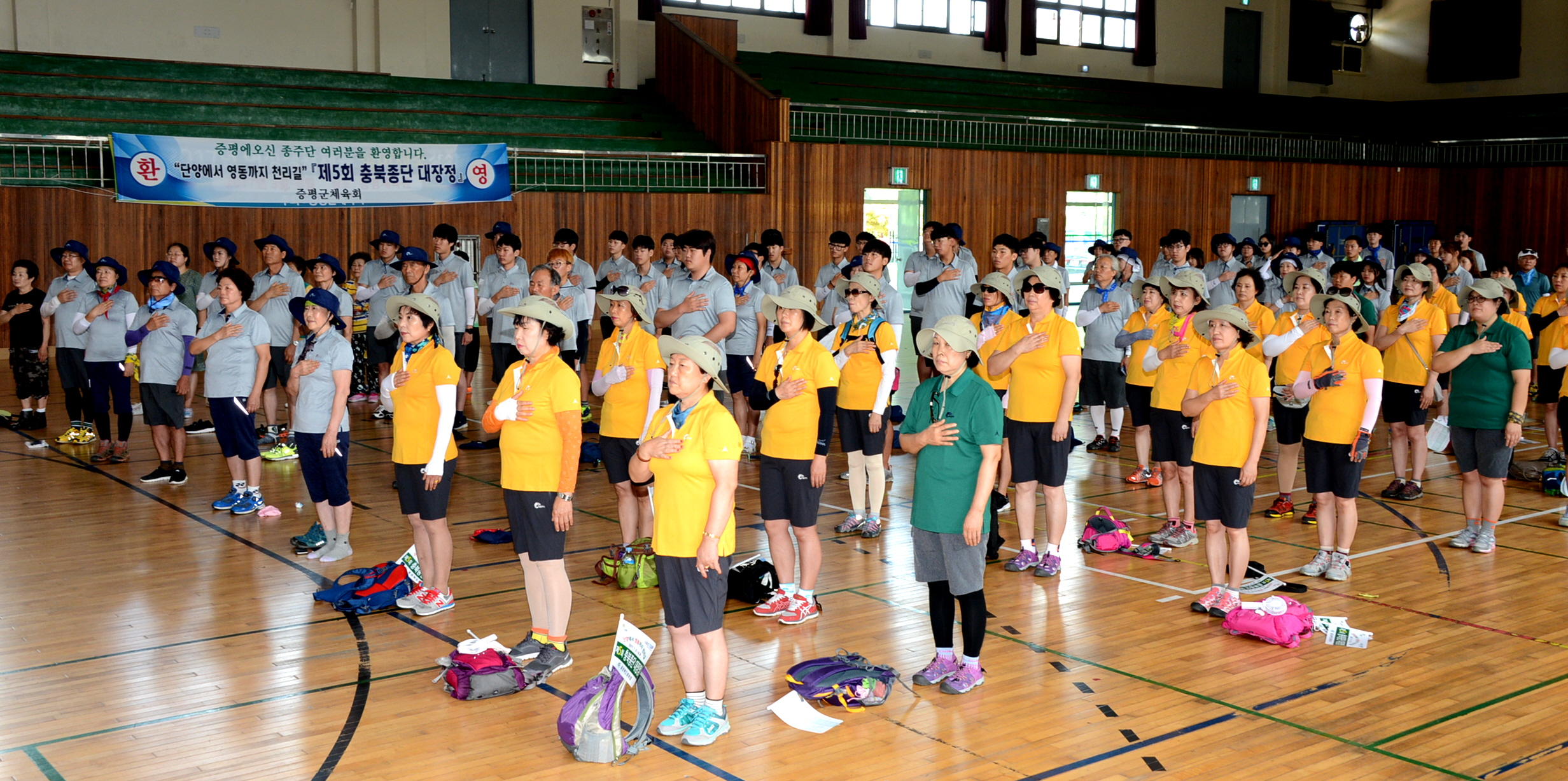 증평군(군수 홍성열)이 4일 증평체육관에서 홍성열 증평군수를 비롯해 김태우 군의회 부의장 등 200명이 참석한 가운데 충북종단 대장정 종주단을 격려하기 위한 환영식을 가졌다.[보도자료실 참조]