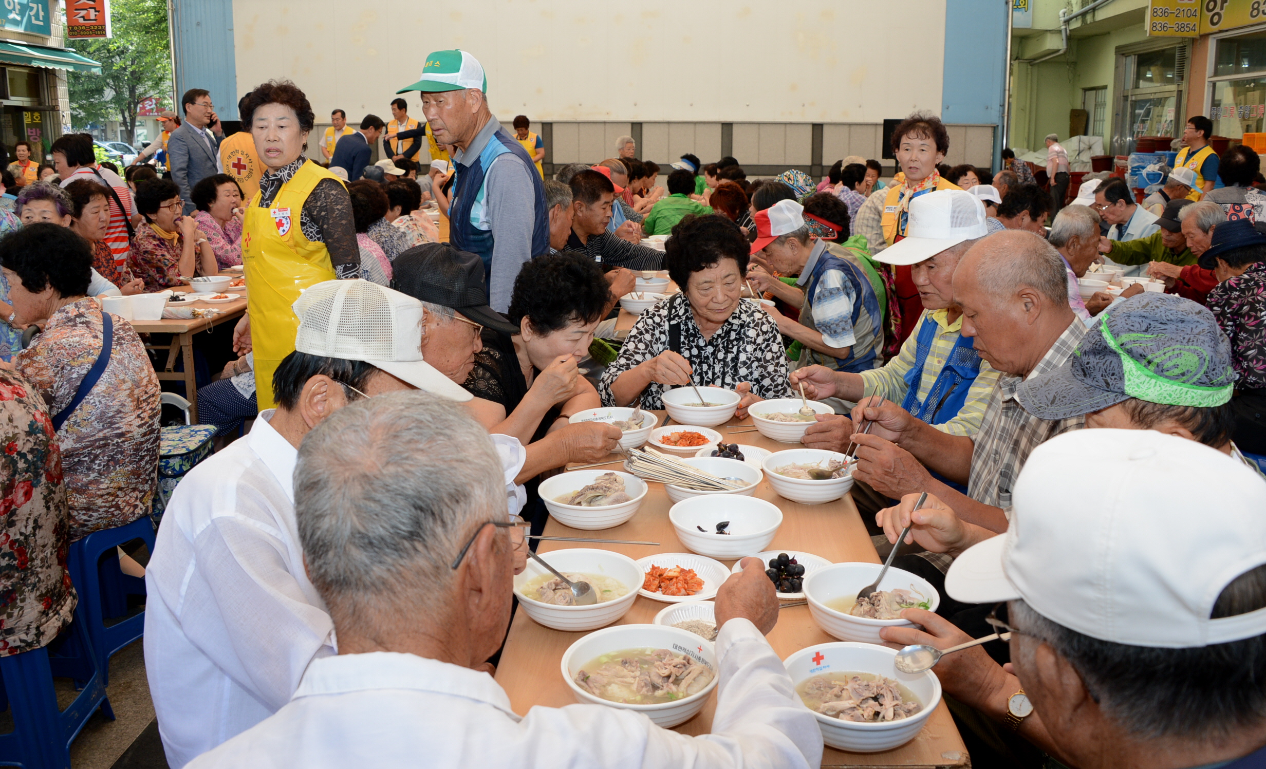 대한적십자사봉사회 증평지구협의회(협의회장 엄대섭)는 31일 증평장뜰시장 광장에서 지역 어르신 300분을 초청해 삼계탕 나눔봉사를 실시했다.(보도자료실 참조)