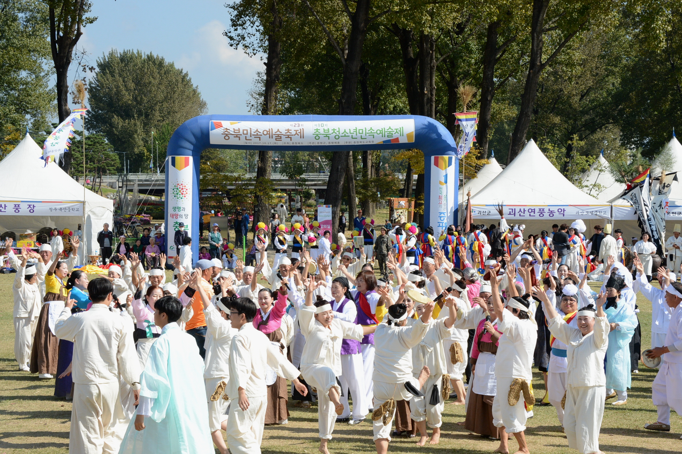 증평 보강천체육공원에서 17일 열린 제23회 충북민속예술축제 및 제10회 충북청소년민속예술제가 각 시군 민속예술팀의 열띤 경연과 함께 화려한 막을 내렸다.[보도자료실 참조]